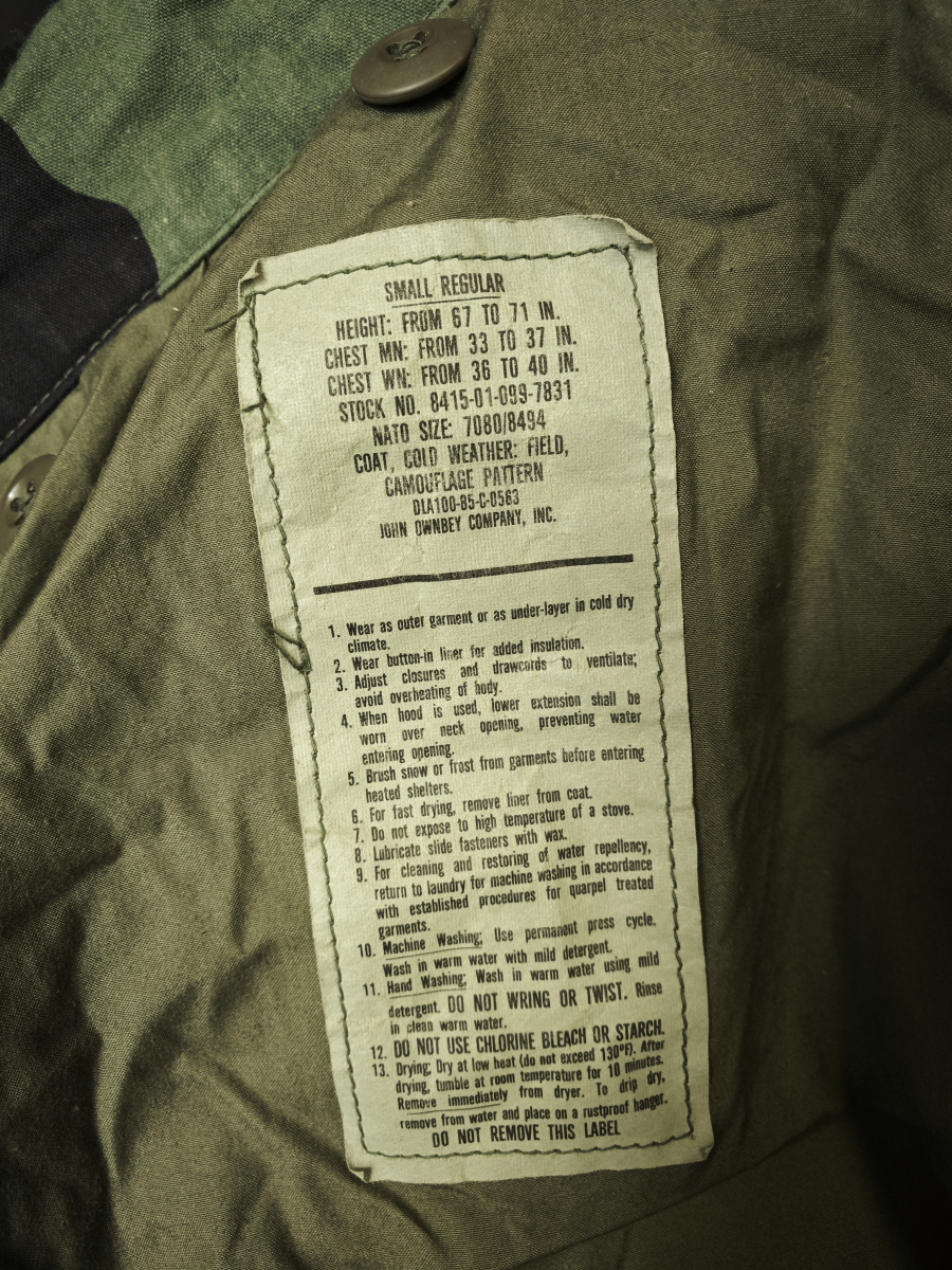 Еще один миф о номере контракта NSN. На самом деле его наличие или отсутствие не говорит нам об оригинальности. Многие реплики имеют этот номер, но есть и оригинальные без этого номера на бирке. В конце 60-х годов, экспериментальные куртки Митчелл M-65 были сделаны на Окинаве в качестве тестовых образцов для выдачи в войска специального назначения США во Вьетнаме. Там не было никаких контрактов, ни официальных заказов - так что невозможно найти какой-либо номер контракта на вещах. Там же производили много одежды в камуфляже Тiger stripe - на форме имелись только бирки с размером.
