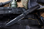 Ножи комплектуются ножнами, адаптированными под систему крепления MOLLE. При проектировании ножен учитывался ряд требований, чтобы соответствовать жестким стандартам НАТО: нож должен быть бесшумен при ношении, вставляться в ножны любой стороной, надежно фиксироваться не менее чем двумя точками крепления. В результате получились многофункциональные ножны, с возможностью ношения ножа рукоятью вверх, либо рукоятью вниз, удобно размещаемые на поясе или элементах разгрузочной системы. Также продев ремешок в нижнюю полоску MOLLE с задней стороны, чехол может дополнительно быть закреплен на бедро.