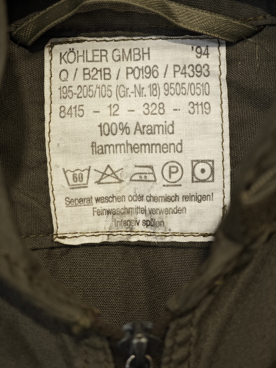 Данная модель использовалась до 2010х годов. С 2010-х Бундесвер перешёл на смесовые ткани (арамид + углеродное волокно), но комбинезоны Köhler GmbH остаются в резерве.