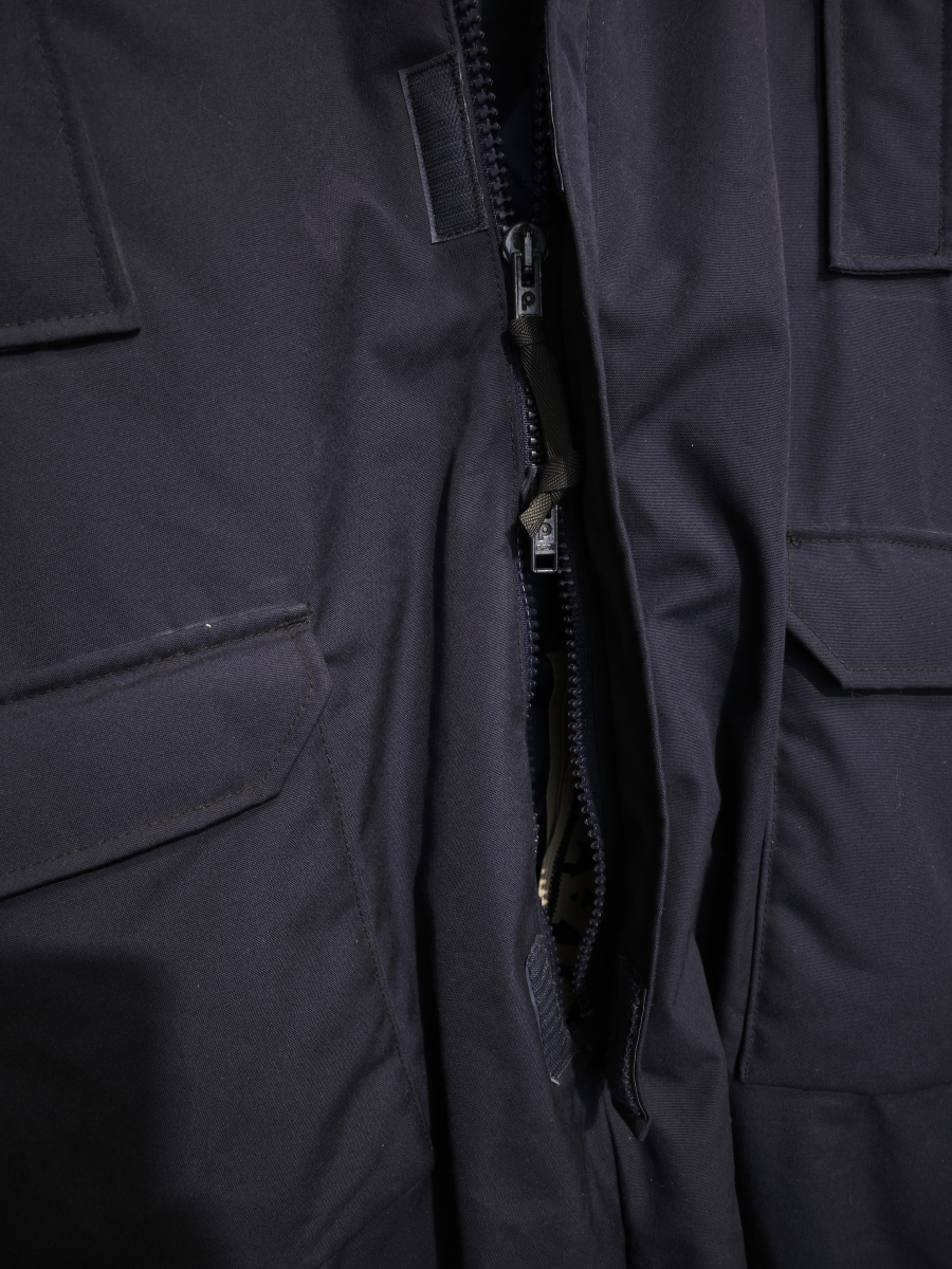На штанинах вертикальные молния до пояса, закрыты ветрозащитным клапаном.