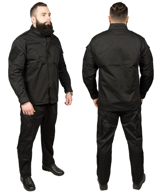 Современный костюм охраны, выполненный на базе армейского All Combat Uniform в черном цвете из армированной рипстоп ткани.