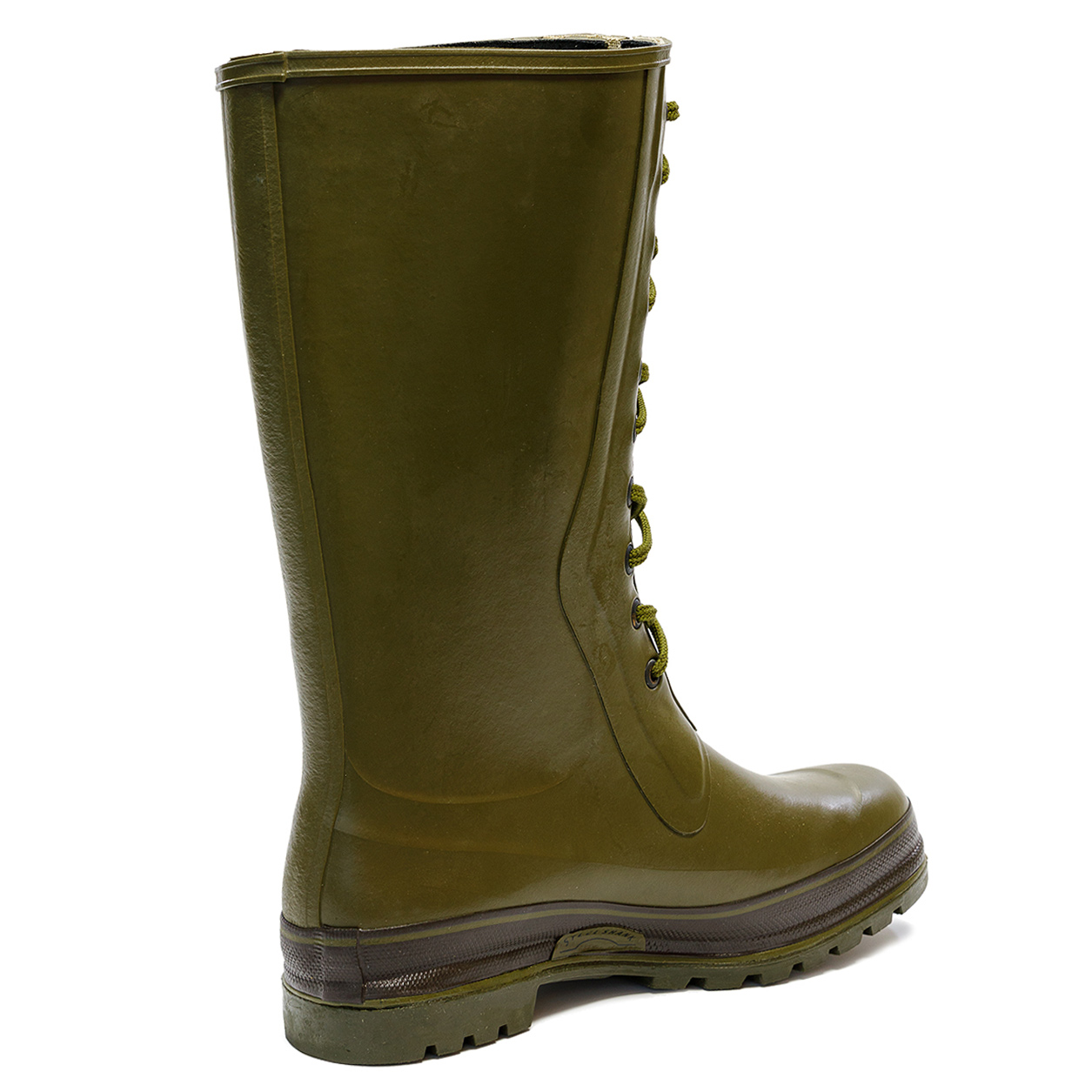 Резиновые сапоги из Европы - предмет гордости любого охотника. В данной модели продумана каждая мелочь, что обеспечивает удобную посадку, надёжную фиксацию на ноге с возможностью регулировки голенища и защиту от холода зимой. Верх обуви изготовлен из натуральной и искусственной резины, нескользящая подошва – из синтетической морозостойкой резины.