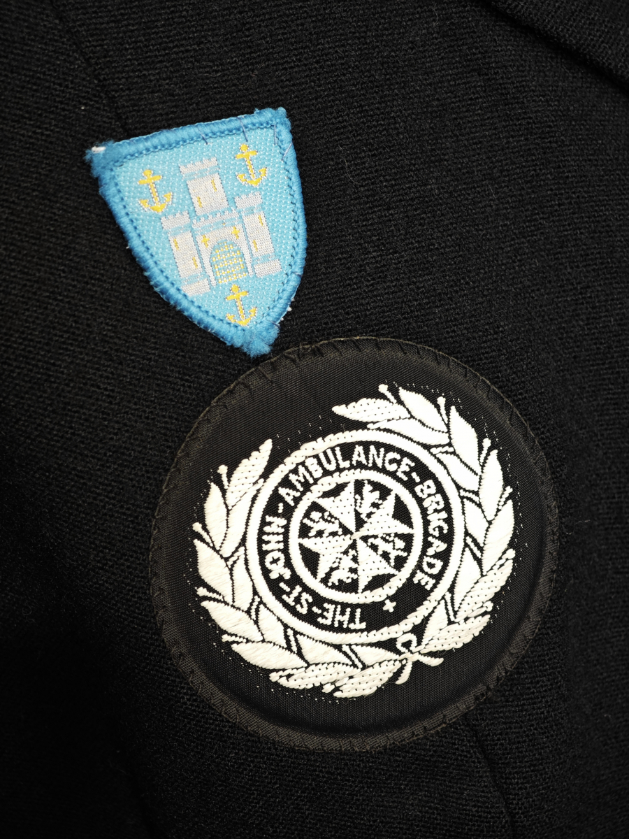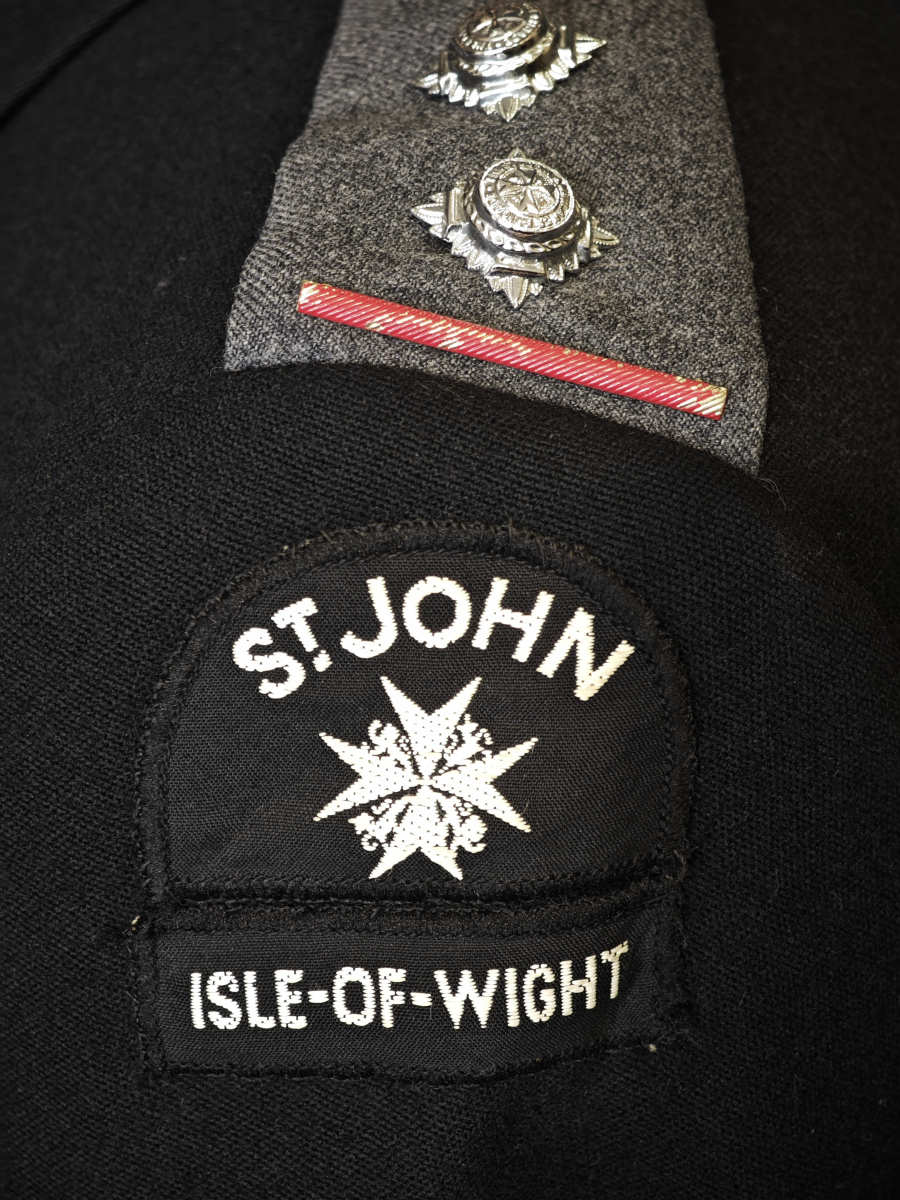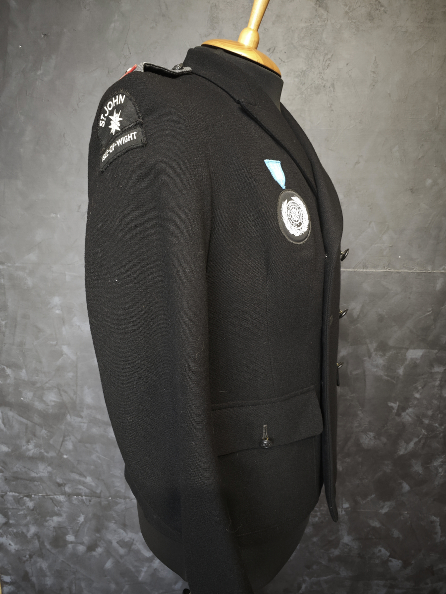 Китель сержанта из Команды управления подразделением Бригады Св. Иоанна на острове Уайт. Это был не рядовой доброволец, а опытный, давно служащий младший командир и администратор, который играл ключевую роль в повседневной работе и управлении своим местным подразделением скорой помощи.