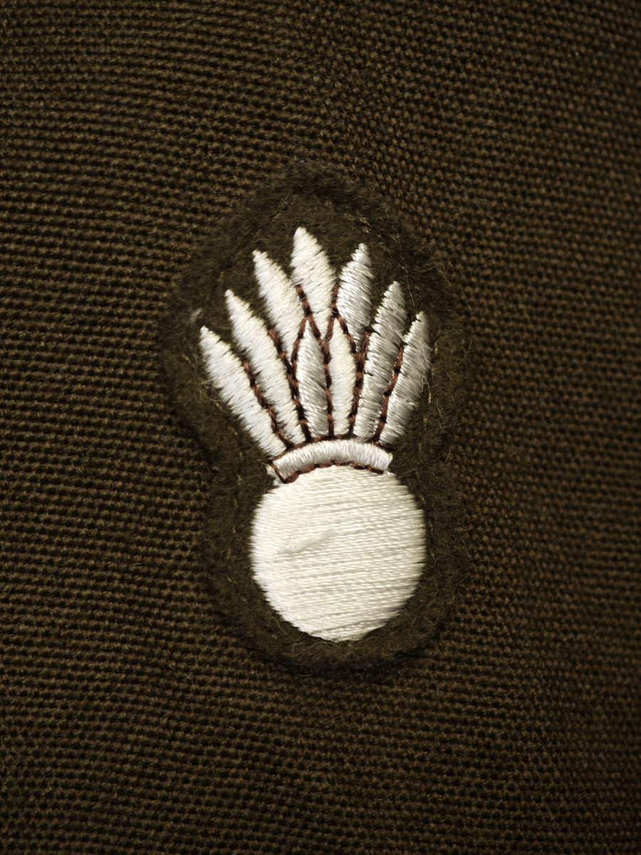 Нашивки: Гренада с пламенем на рукаве.