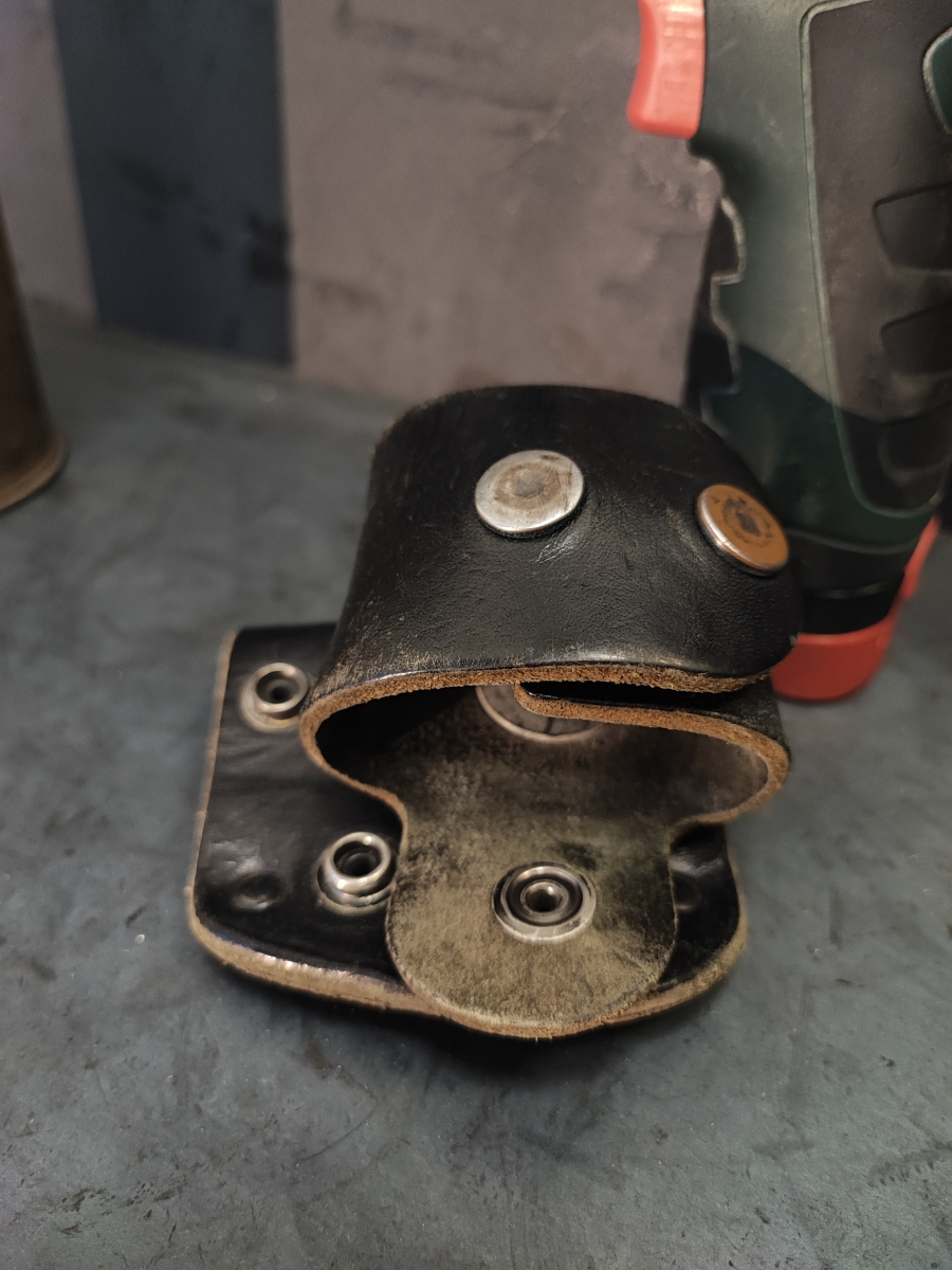 Кожаный держатель от части полицейского снаряжения. Может использоваться для быстрого доступа к навесному оборудованию.
