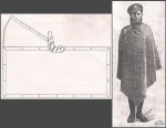Очень необычный крой - носить его может быть очень непривычно. Выкройка не симметричная. У него выражено одно плечо (правое), а слева нет. Нет выреза для рук. Полы слева более длинные, чем справа. Правую руку проще достать наружу для необходимых манипуляций рукой, чего не скажешь о левой руке. Зато более длинные полы слева могут полностью закрыть длинный ствол винтовки, висящей на шее поперек тела.