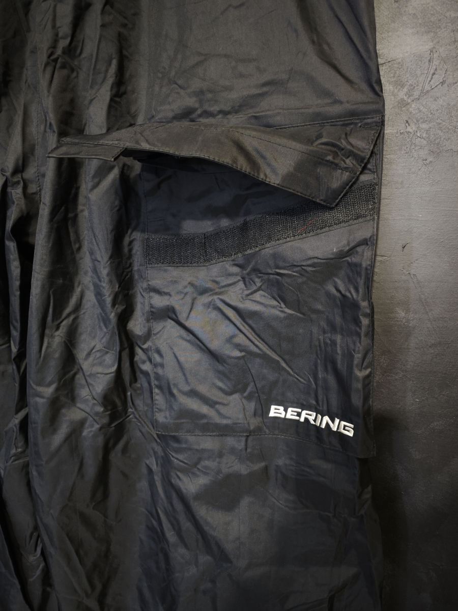 Непромокаемые брюки самосбросы черного цвета Bereng - очень мощные и тяжелые, из плотного нейлона с надежным прорезиненным слоем.