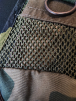 Жилет разгрузочный с подсумками на сетке в камуфляже Woodland. По бирке похоже на оригинал, но чей? Аутентично получится реконструировать каких-нибудь душманов.