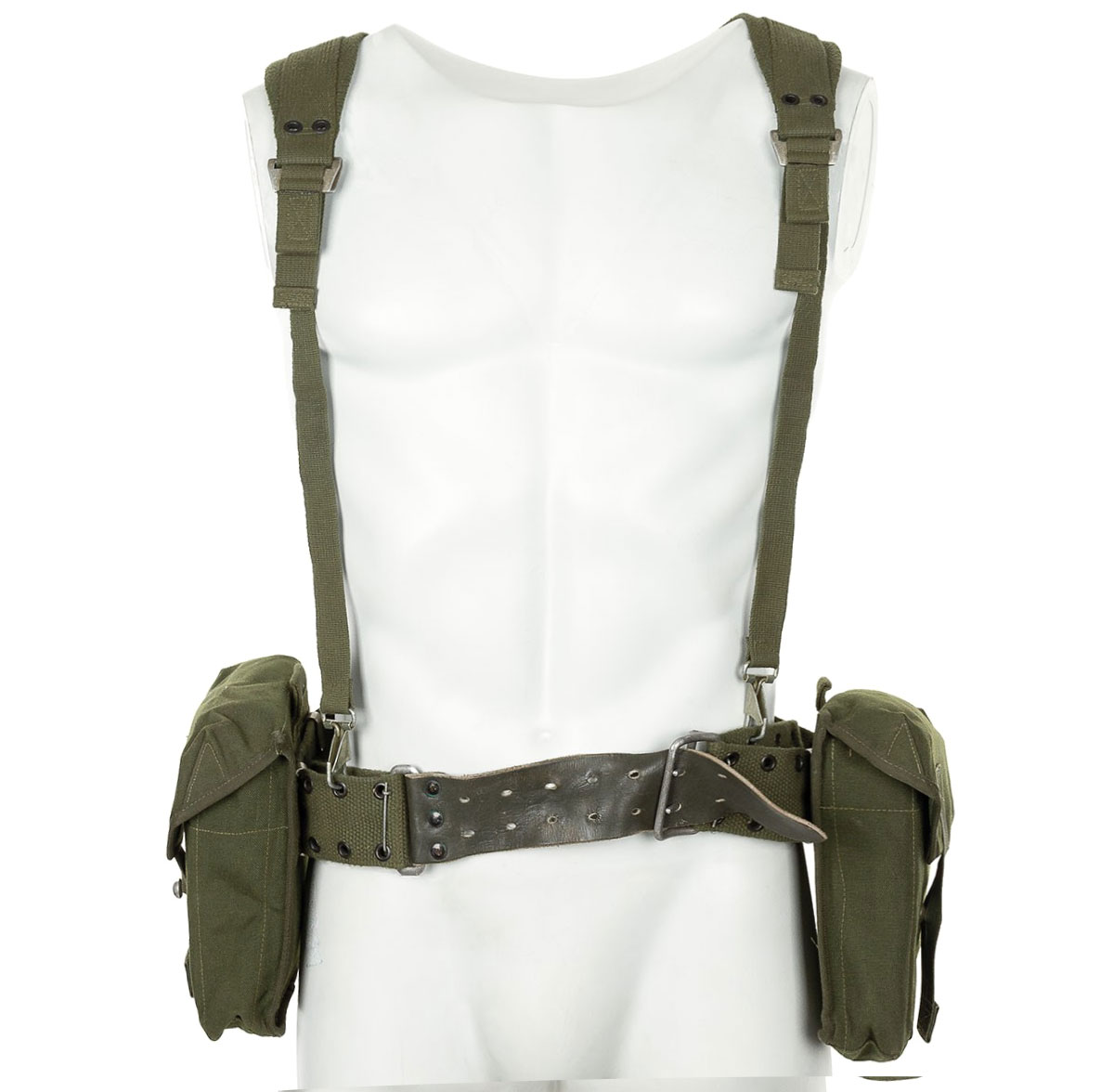 Пояс представляет собой традиционный боевой ремень шириной около 5 см с металлическими втулками для крепления крючков X-лямок и регулировочных штифтов, и после правильной регулировки вы можете использовать часть кожаного ремня, чтобы быстро изменить его размер на лету, если это необходимо. Абсолютная максимальная длина всего пояса составляет около 125 см - очевидно, что более крупные мужчины считались непригодными для любых целей в армии.