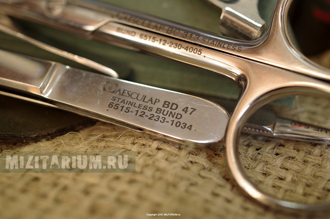 3) набор инструментов (ножницы, пинцеты, пилка, зажим для бинтов итд... отменного качества из нержавеющей стали со штампом BUND)