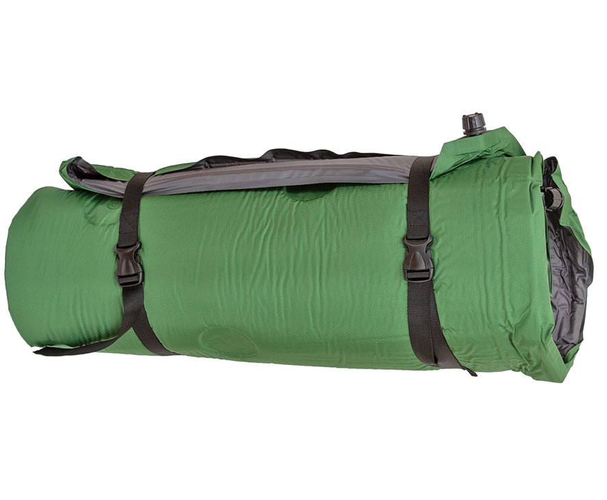 Новая модель самонадувающегося коврика, имеет не только ширину увеличенную до 140 см, но и интегрированную подушку высотой 15 см, оснащенную двумя антикоррозийными пластиковыми клапанами.