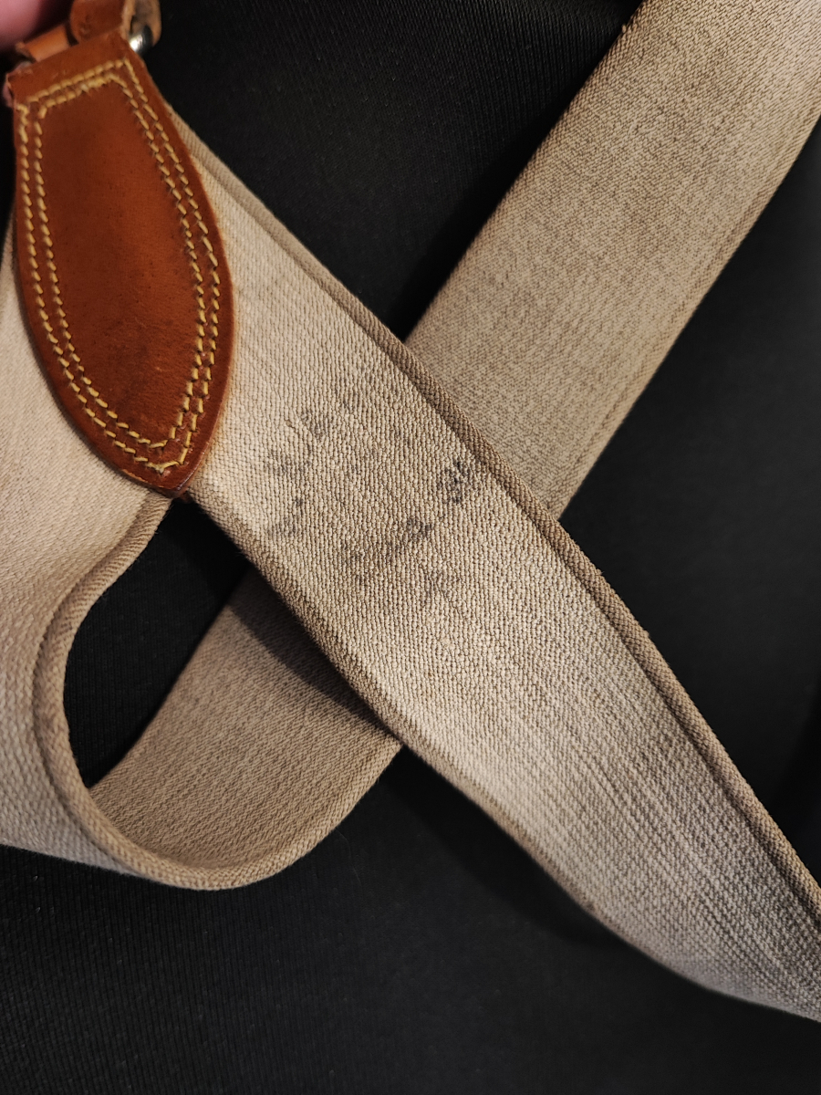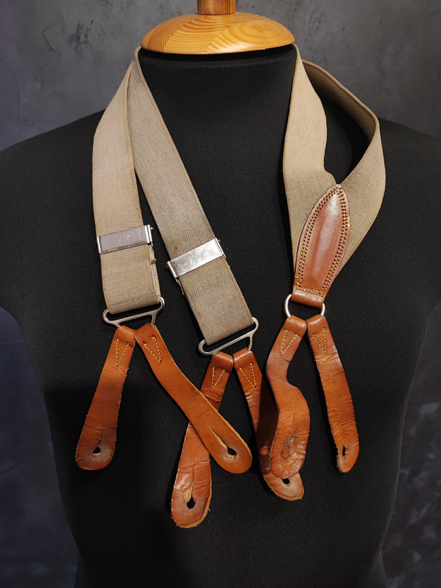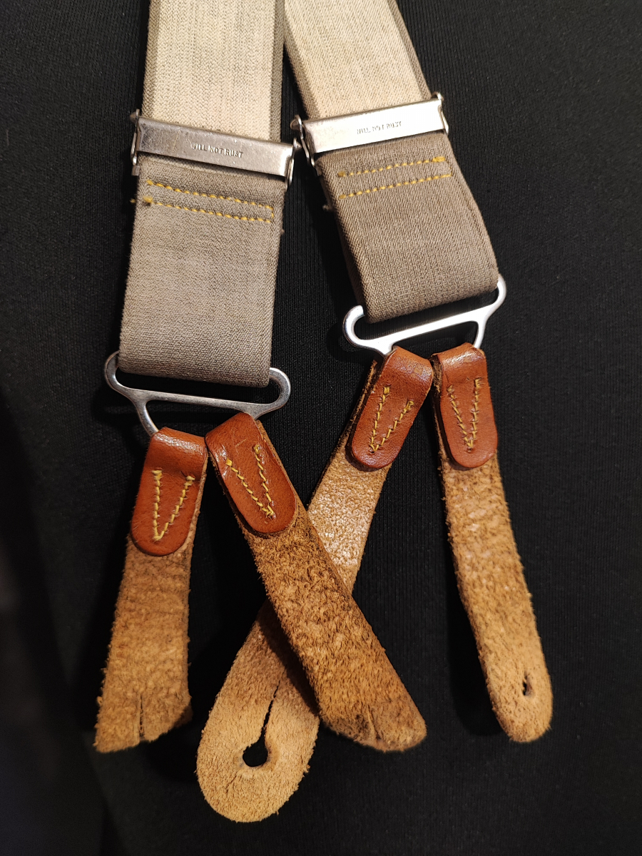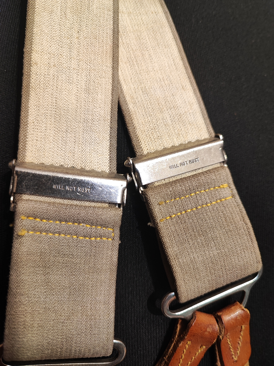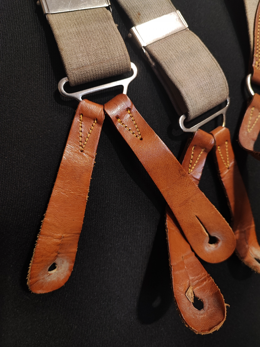 Подтяжки с кожаными петлями и металлическими фиксаторами. Штамп не читается, но видна стрелка вверх - знак принадлежности к ВС Великобритании.