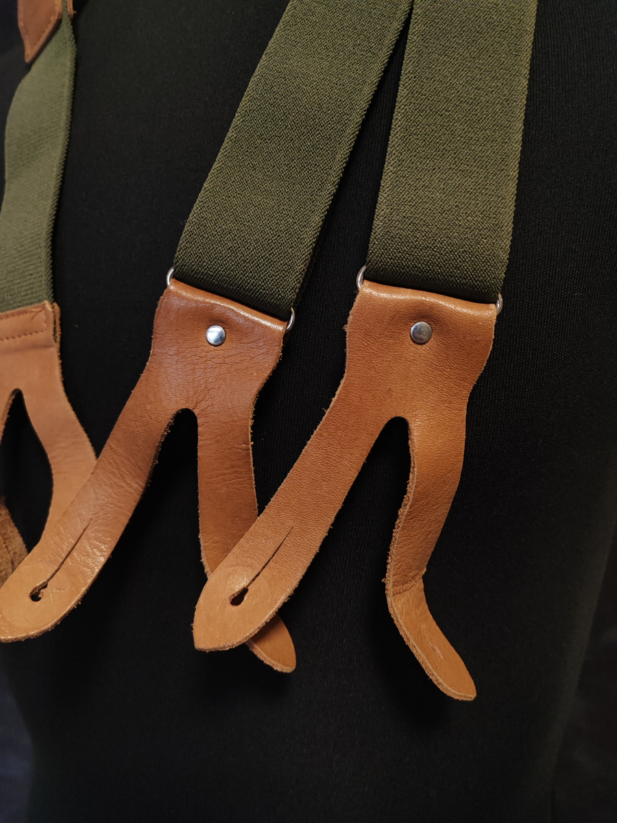 Подтяжки пришли в группе с другими армейскими товарами ВС ГДР и ФРГ. Они не похожи на оригинальные пожтяжки бундесвера или NVA. Резинка у них в точности как на оригинальных бундесверовских. Кожа натуральная.
