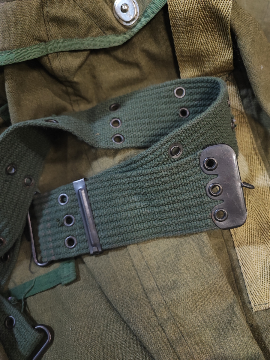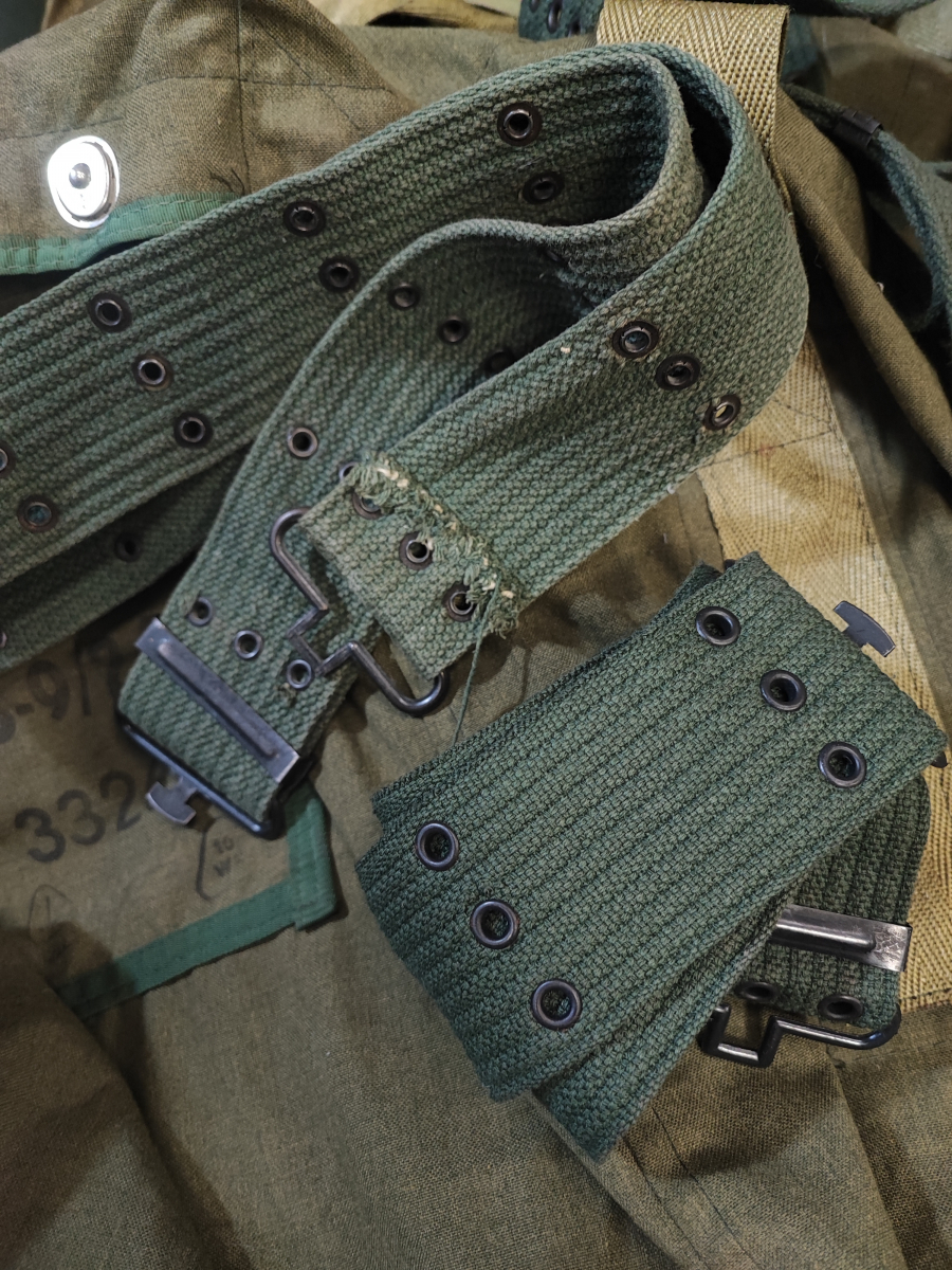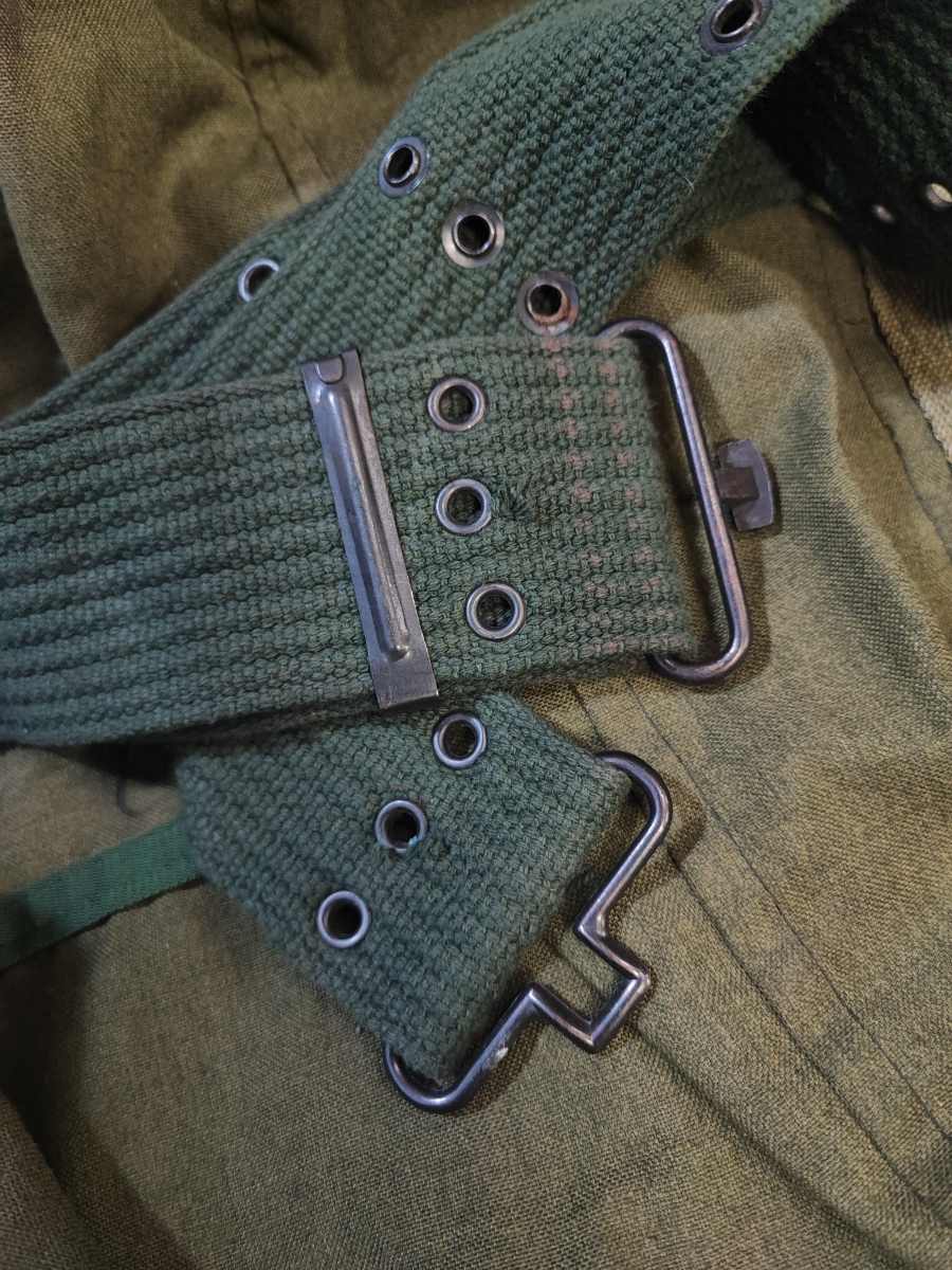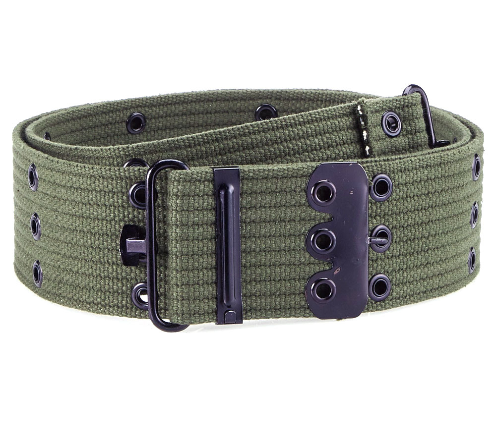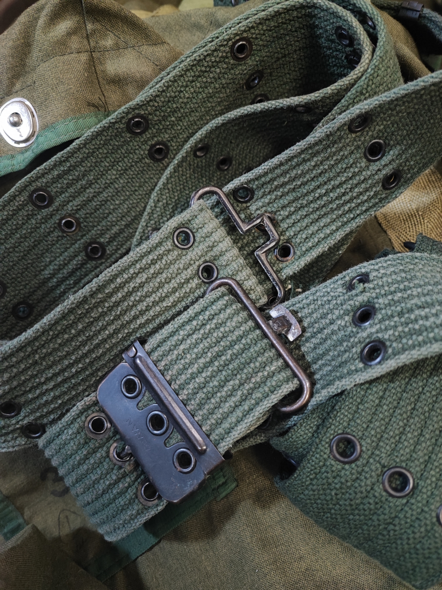 Ремень старого образца из хлопка с металлической фурнитурой.