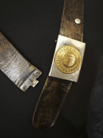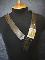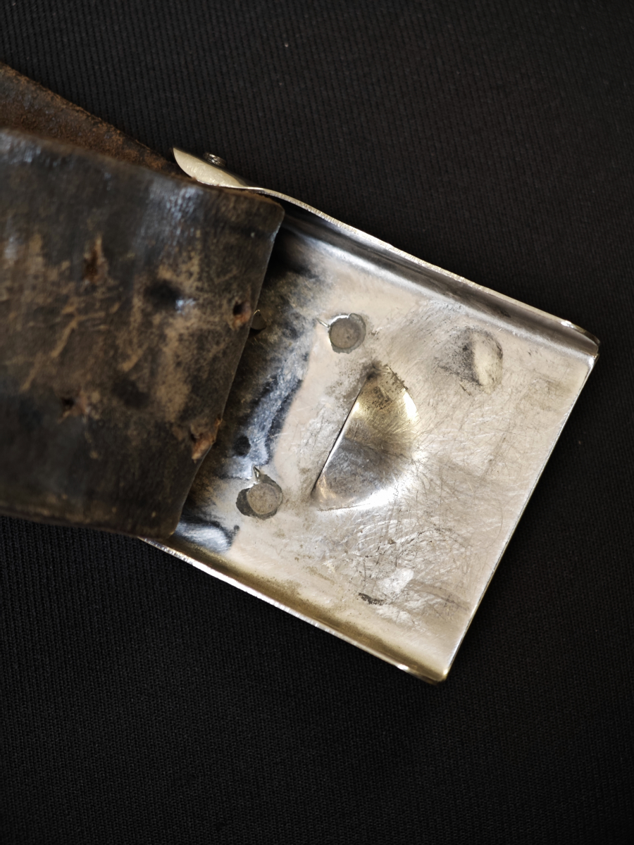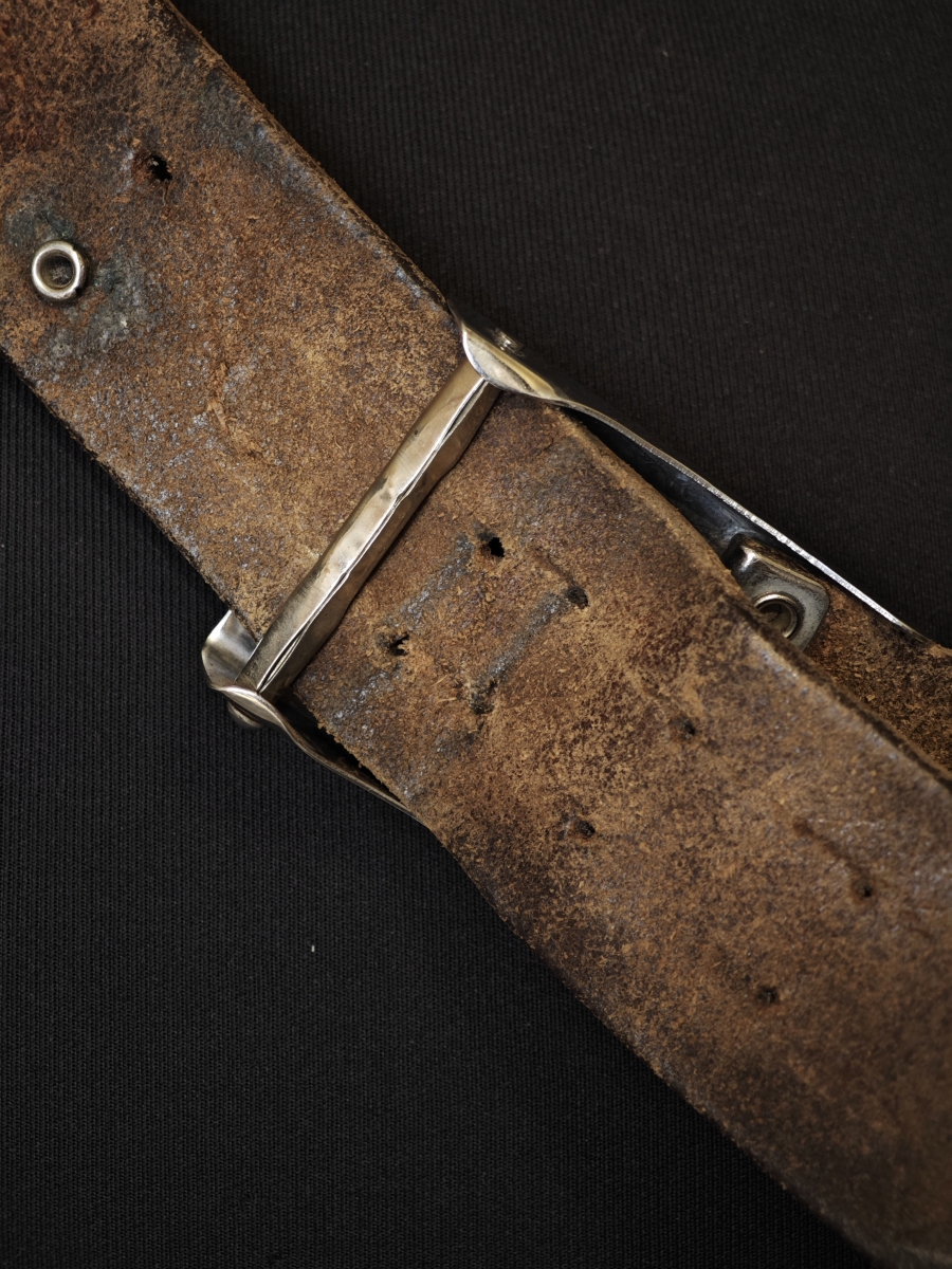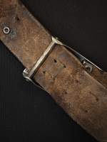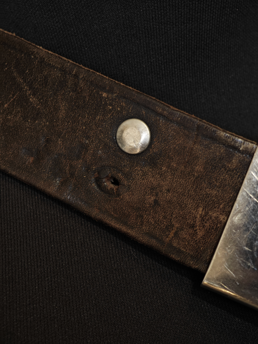 • Утрачен вторичный кожаный хлястик с отверстиями для шпеньков пряжки (аналогично обычным бундес ремням). Видимо поэтому проделаны отверстия в теле основного полотна ремня.