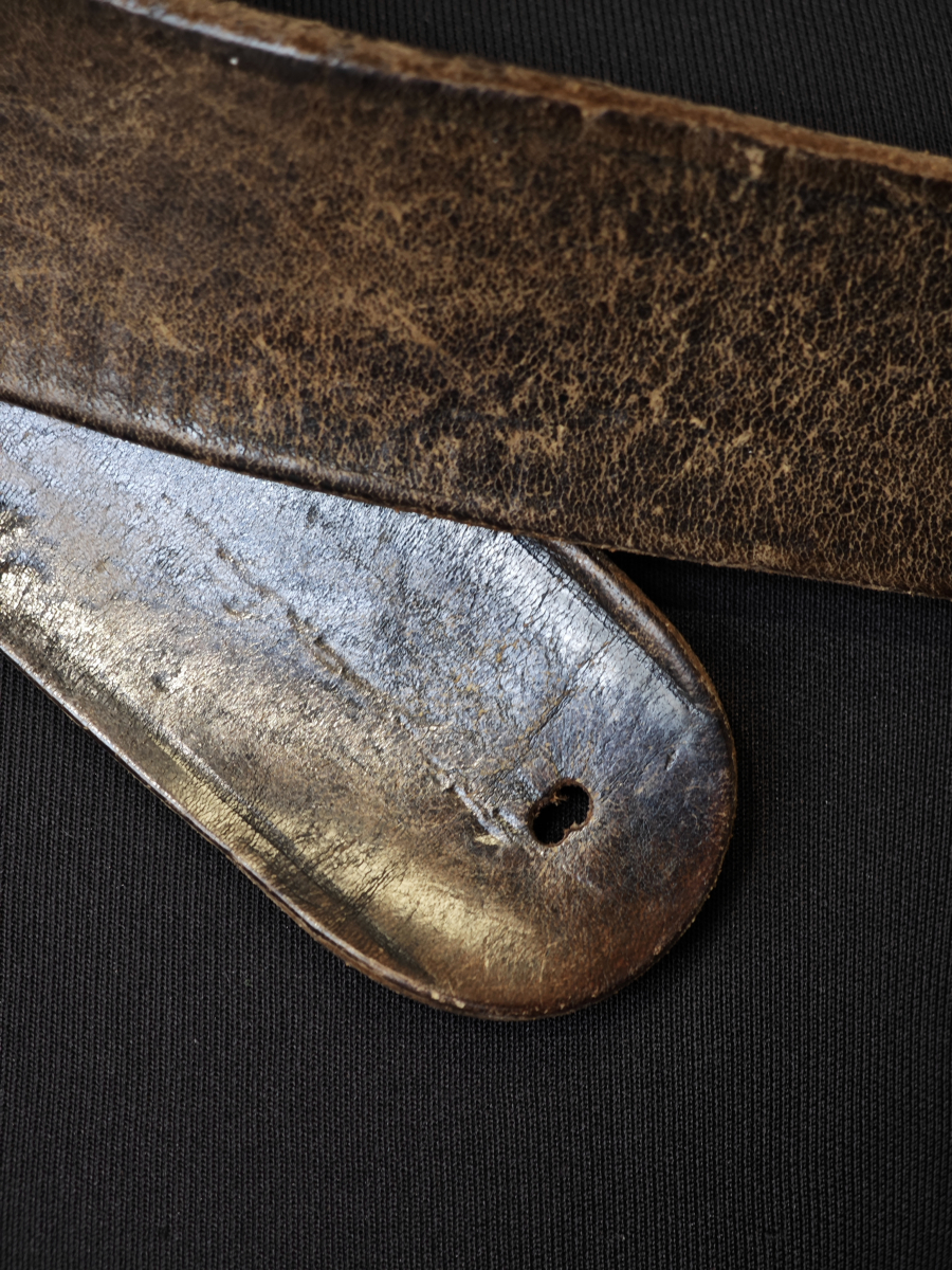 • Ремень уставший, сильно. Это видно по фото, но пока еще вполне пригодный к использованию потому, что кожа мягкая.