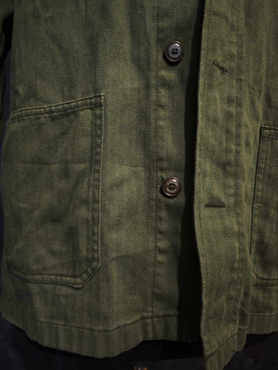 Винтажный оливковый китель S.Oliver из хлопковой ткани с рисунком елочка.