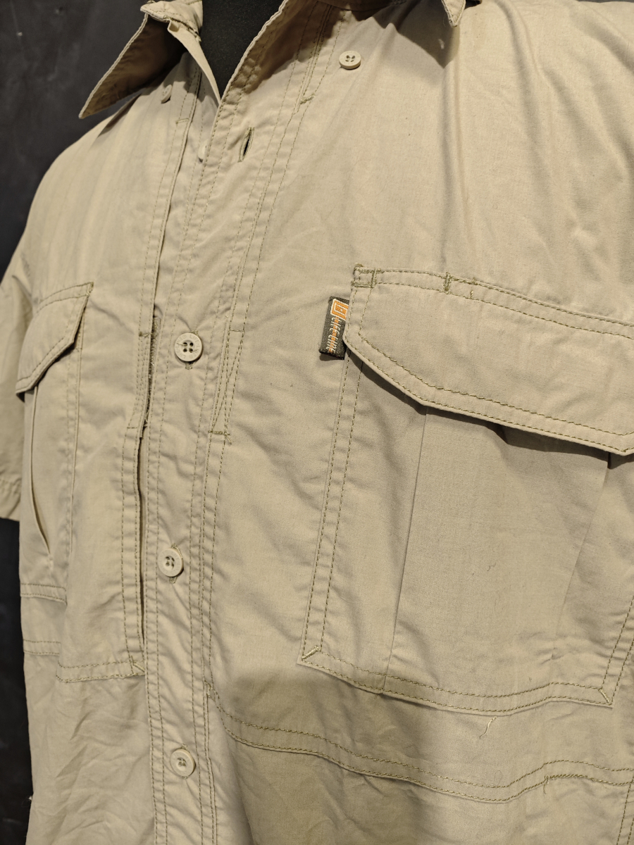 Двойные вместительные карманы на груди. Небольшой карман на левом рукаве.