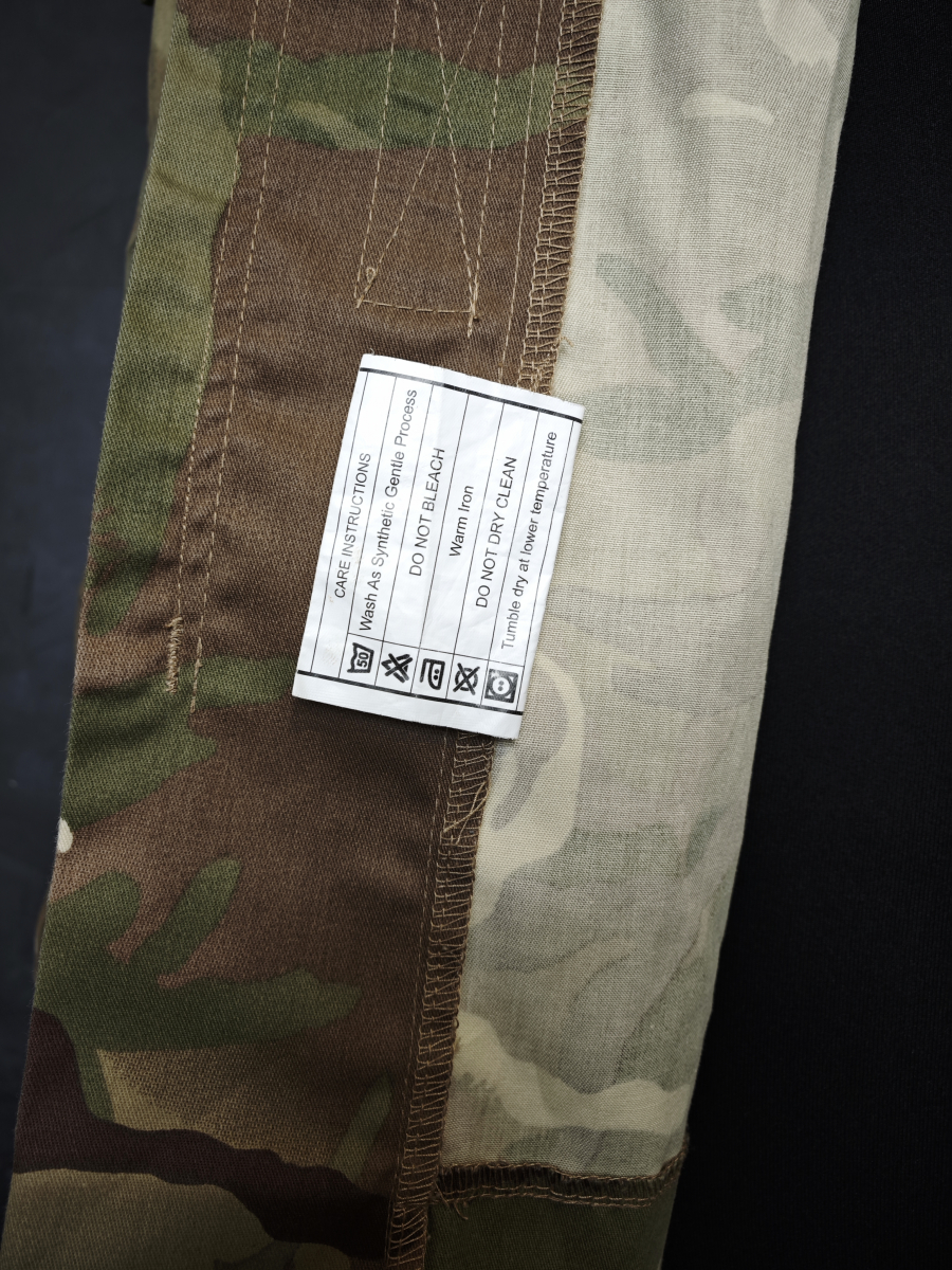 Но мы не можем утверждать - реплика это или оригинал. Сшита очень качественно, полностью соответствует бритаснкой PCS. НО материал заметно более плотный, чем на известных нам PCS и информация на бирке не соответствует британским стандартам. Однако на бирке есть стрела - символ британского военного имущества. И для "китая" она слишком хорошо сделана.