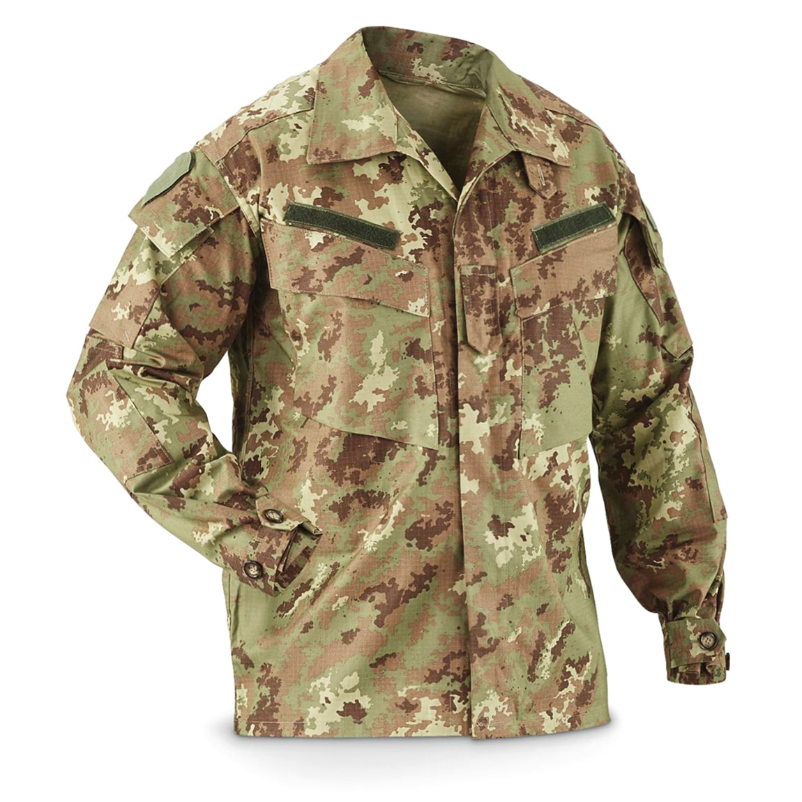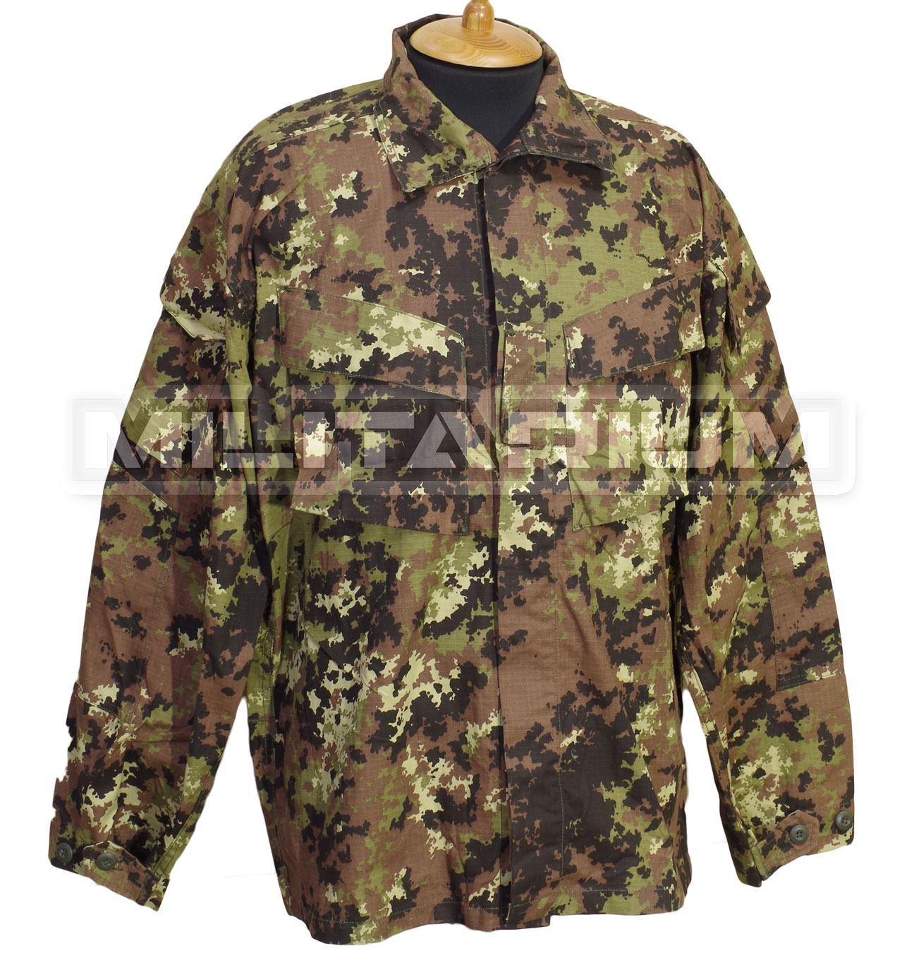 Итальянская армейская куртка Vegetato Camo Field Jacket - это настоящая военная куртка из Италии. Эти полевые куртки имеют камуфляжную расцветку итальянской армии - Vegetato. У Vegetato много оттенков, от светло-зеленых весенней листвы, до темно-коричневых осенних.