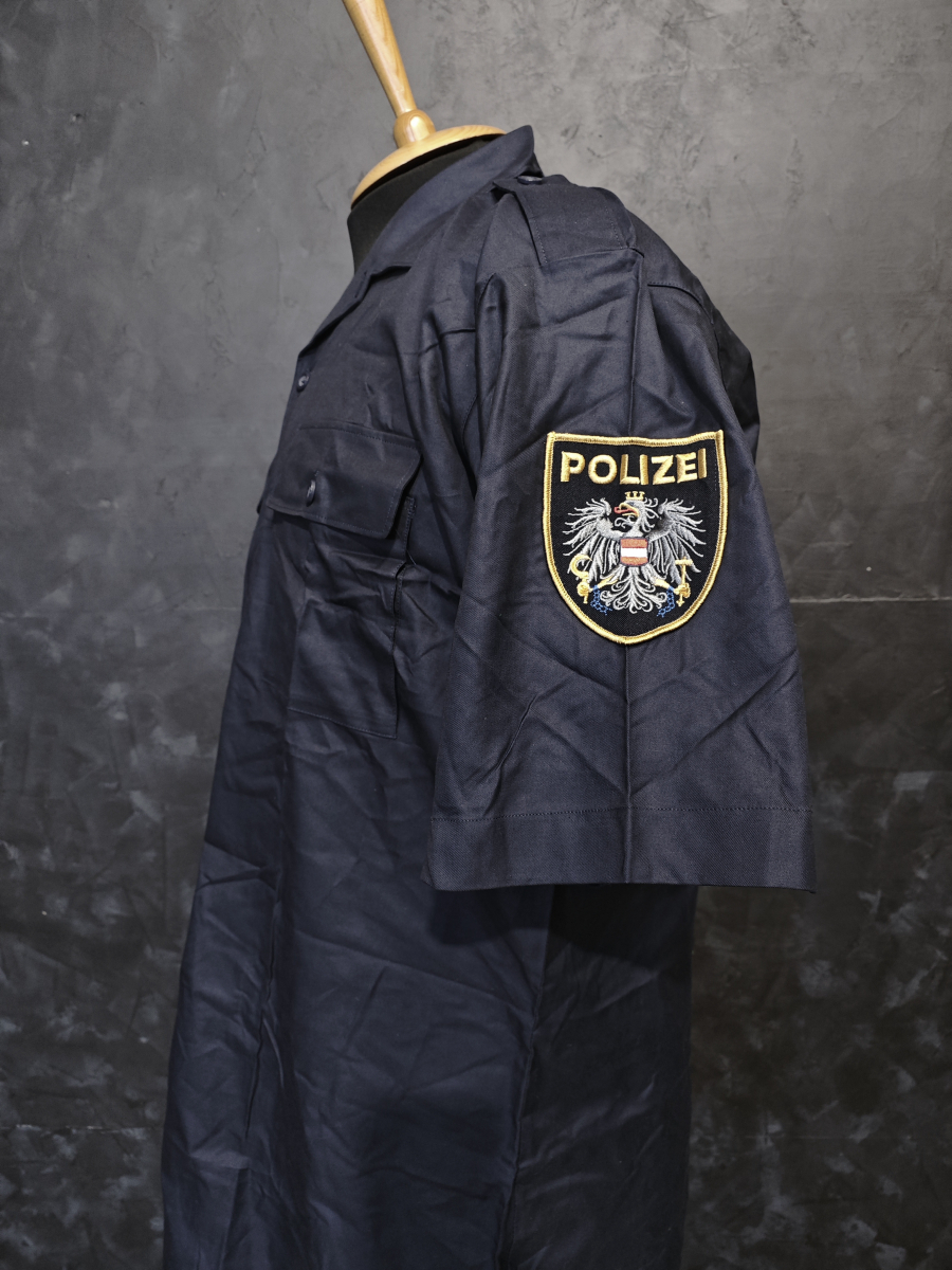 Эта тёмно-синяя сорочка с коротким рукавом является оригинальным элементом униформы Федеральной полиции Австрии (Bundespolizei). Произведенная из 100% хлопка, она представляет собой образец современной форменной одежды полиции Австрии.