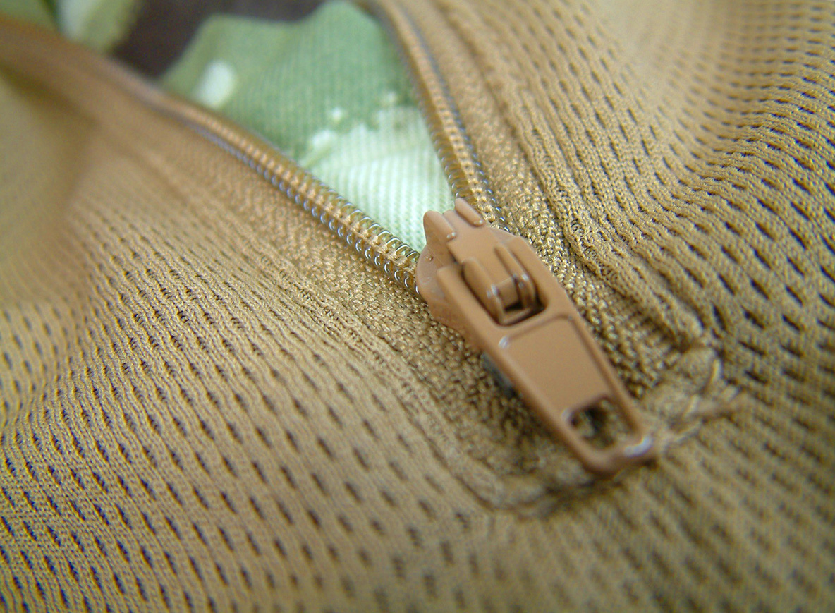 Состоит из двух материалов - влагоотводящий Coolmax и смесовая ткань. Coolmax это сетчатый синтетический материал, который превосходным образом отводит влагу от тела. Этот материал использован в зонепокрытия тела бронежилетом или разгрузкой - грудь, живот, спина.