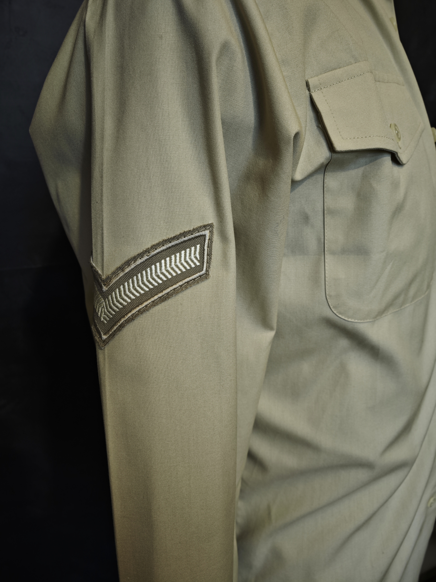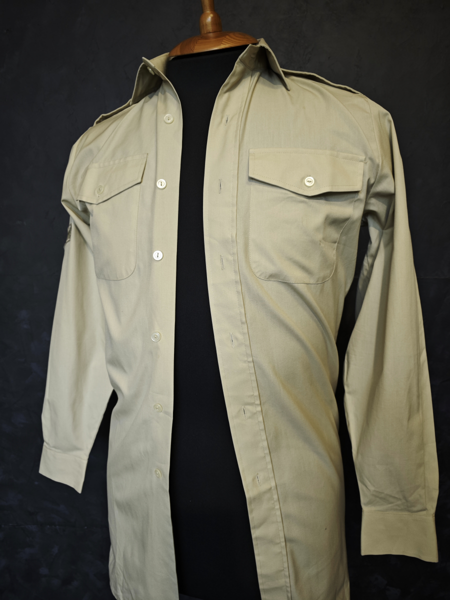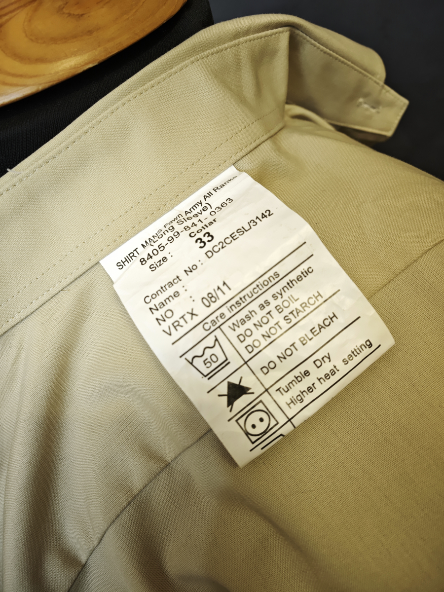 Shirt, Man's, Fawn, Army, All Ranks - эта надпись на бирке указывает на универсальную повседневную сорочку, которая является стандартным элементом комплекта обмундирования.