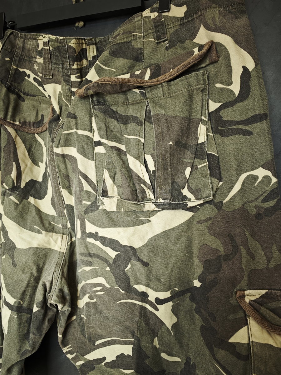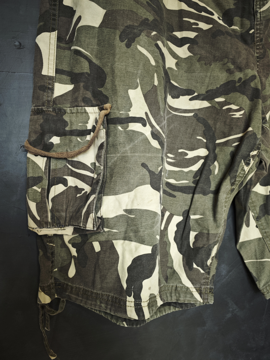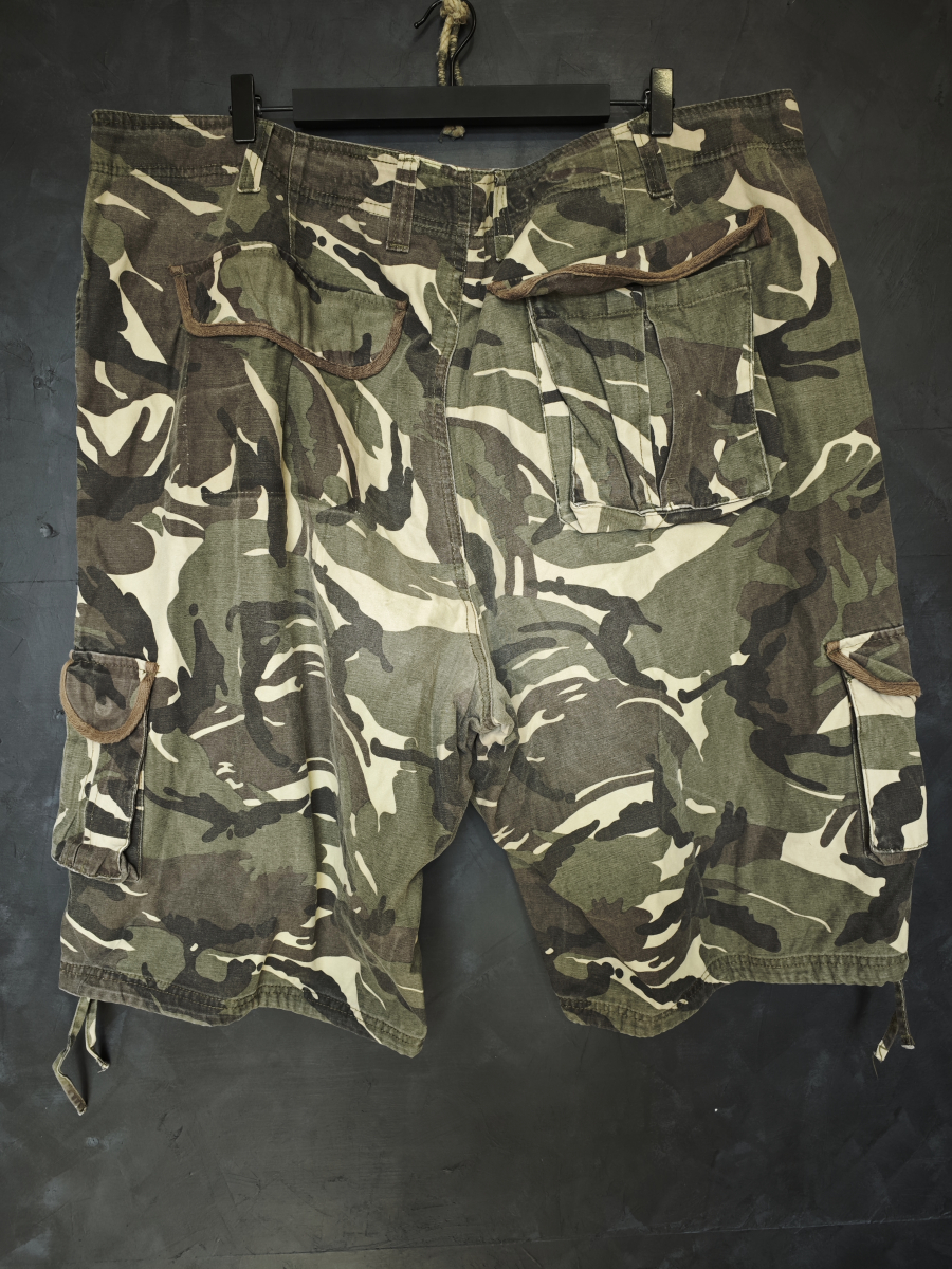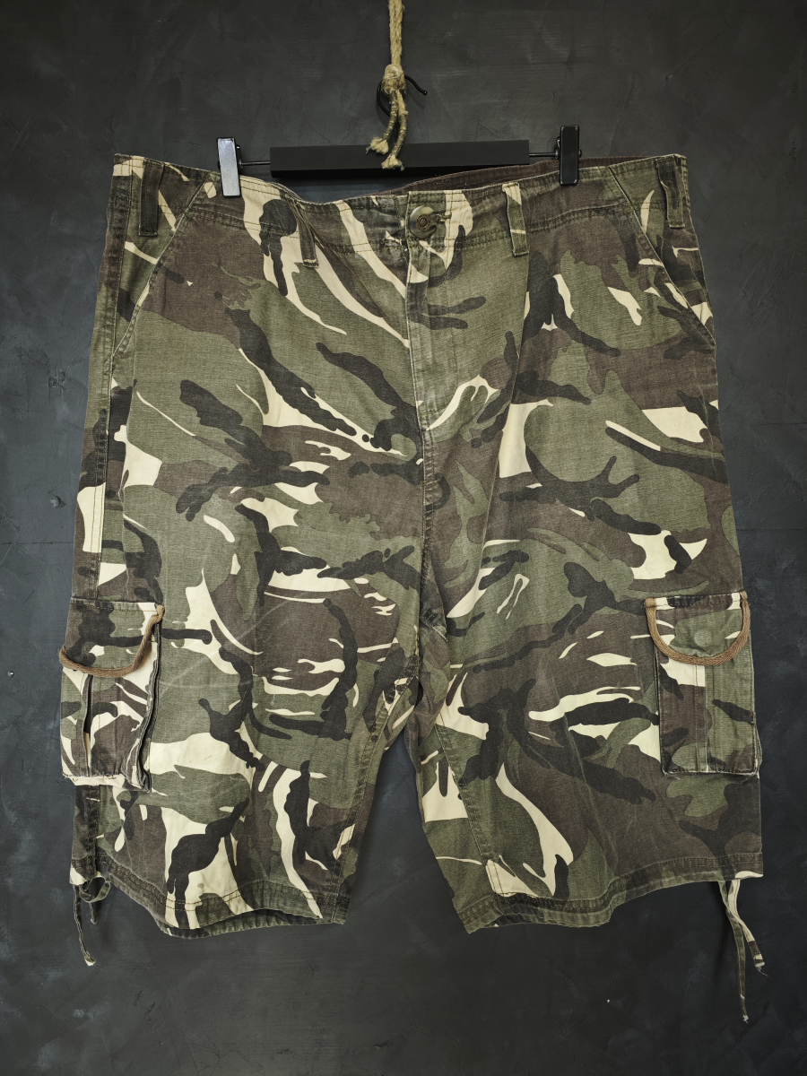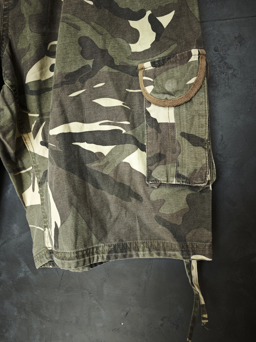 Удлиненные шорты в милитари стиле с карго карманами в лесном камуфляже вудланд.