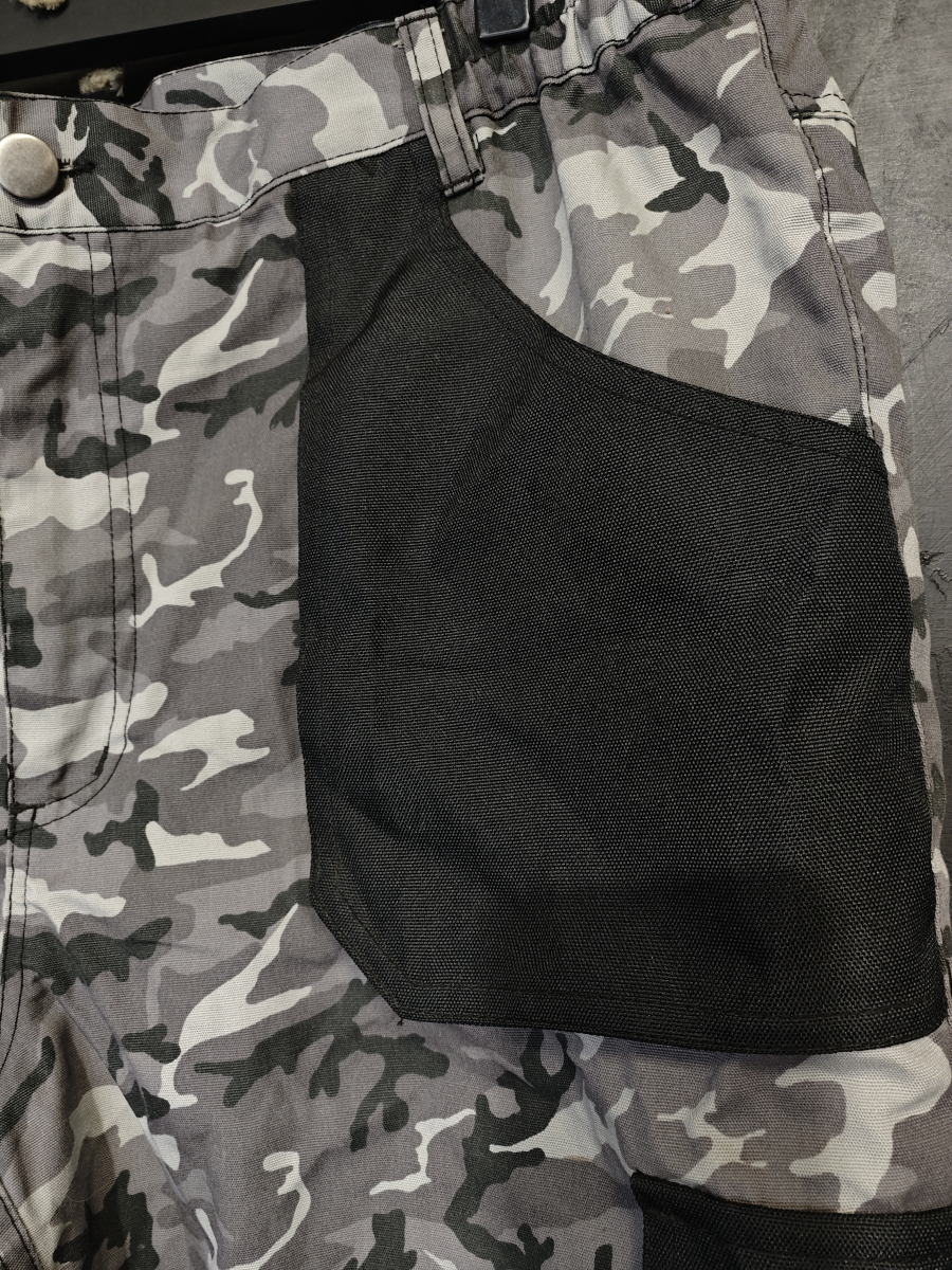 Шорты из плотной смесовой ткани. Имеют контрастные черные вставки из прочного материала типа кордура.