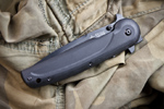 Нож имеет шпеньки для удобного открывания как левой, так и правой рукой. Но мы рекомендуем владельцу ножа освоить технику мгновенного открывания ножа с помощью нажатия на гарду ножа указательным пальцем и одновременным взмахом ножа от себя в сторону. Таким образом нож откроется и зафиксируется линейным замком в одно мгновение, что будет крайне полезно в спасательных или оборонительных операциях.