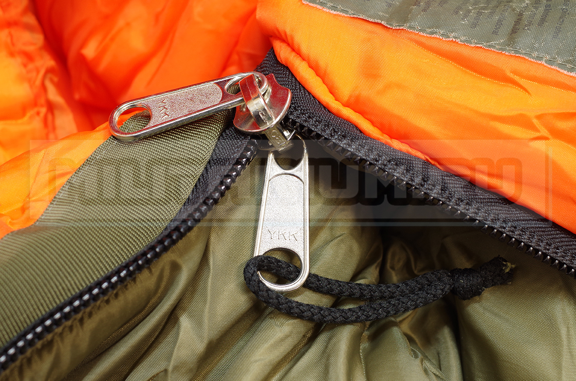 - Спальный мешок застегивается на молнию с дополнительной фиксацией на липучку у горла.