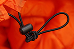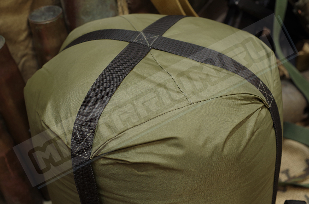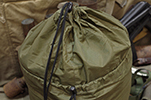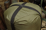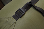 - Матерчатая "крышка" компрессионного мешка крепится к четырем стропам. Затягивая стропы, сложенный спальник можно ужать до минимального размера.