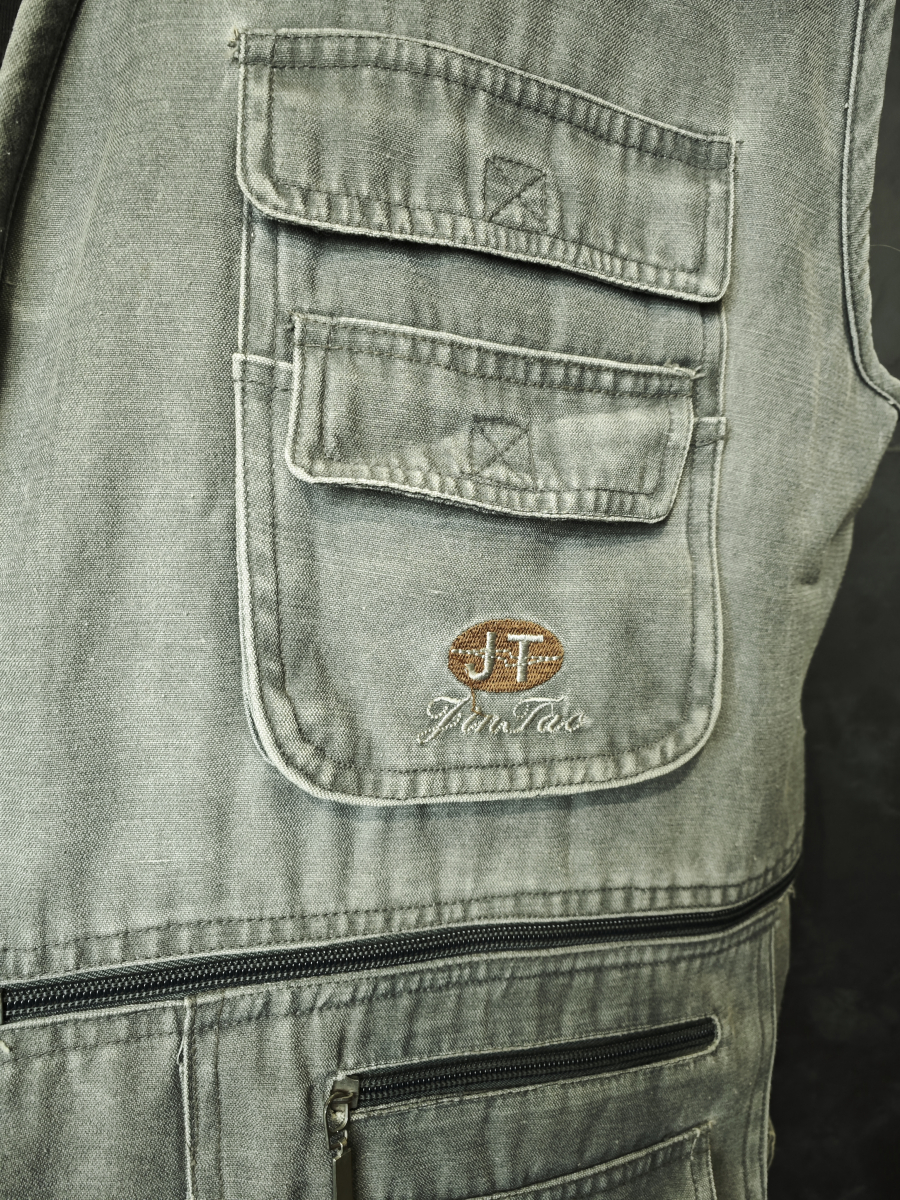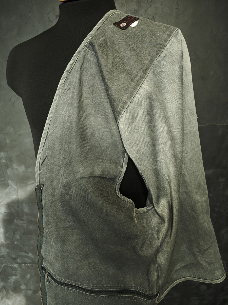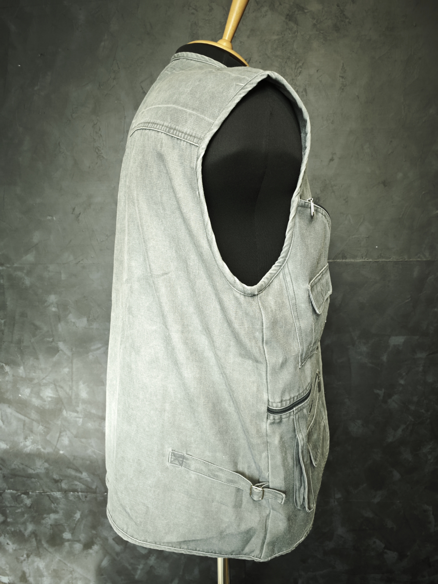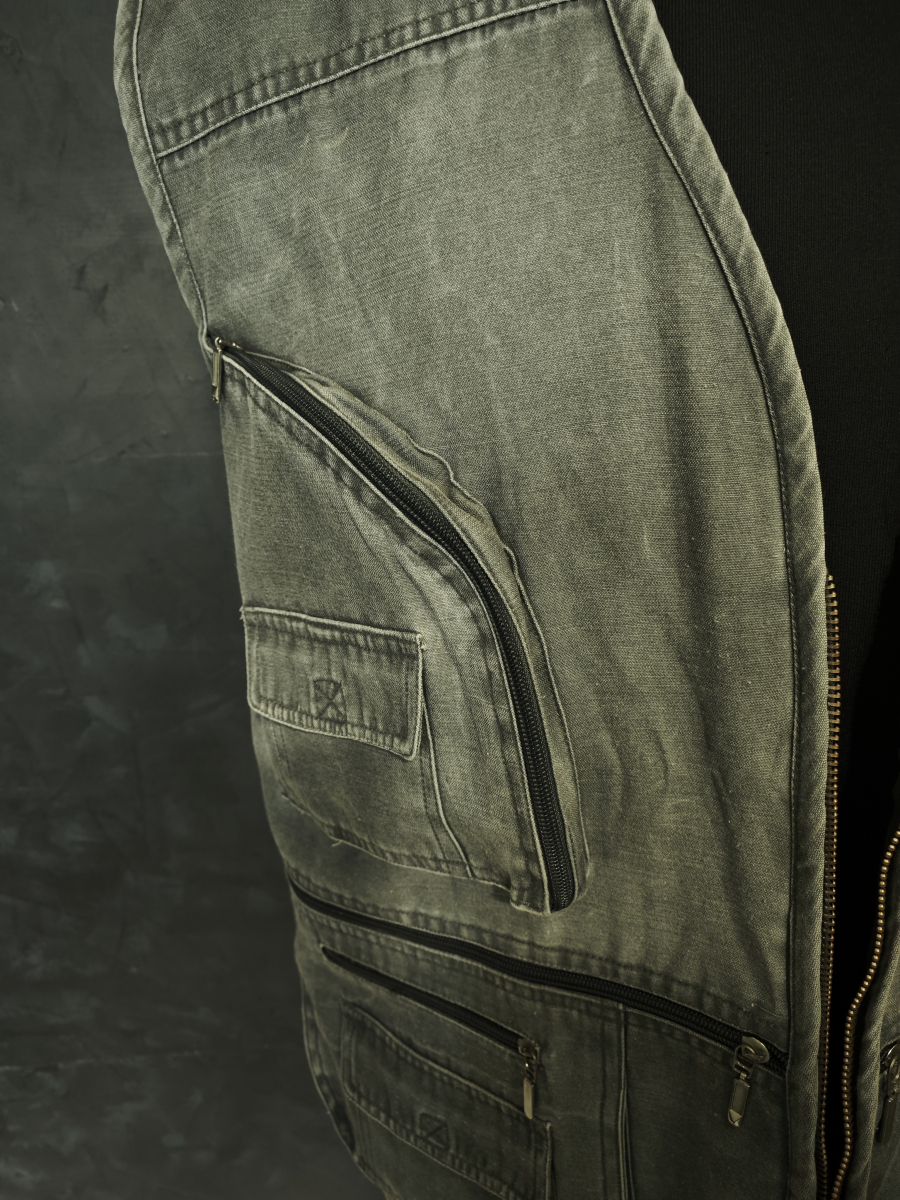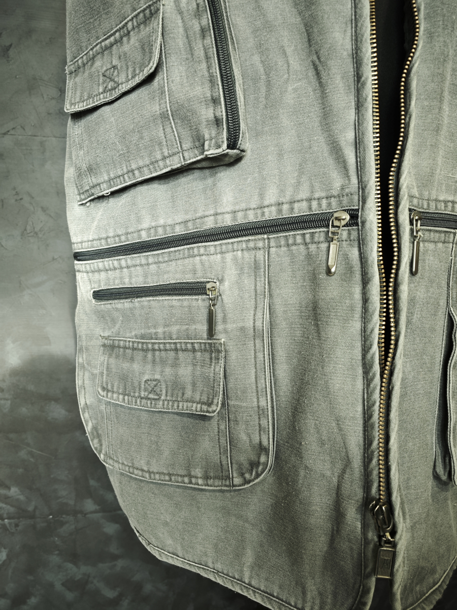 Легкий жилет с большим количеством карманов серого цвета.