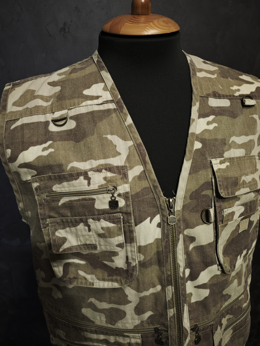 Рыболовный жилет в пустынном паттерне.