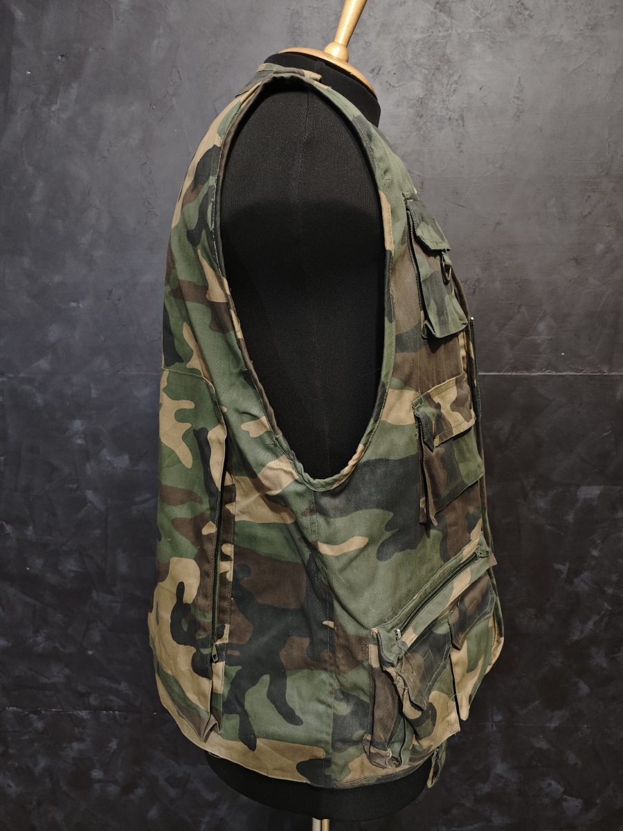 Жилет в лесном камуфляже вудланд для активного отдыха на природе, охоты и рыбалки.