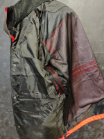 Высокий воротник в который укладывается капюшон (также из мембраны) и закрывается на липучку.