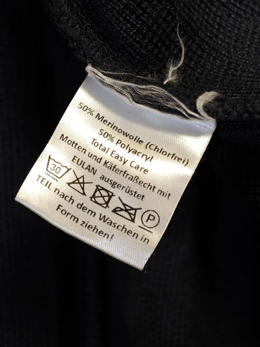 Главный опознавательный знак: Непосредственно на ткань свитера спереди, обычно на левой стороне груди, интегрирована или нанесена методом вышивки/печати надпись "POLIZEI".