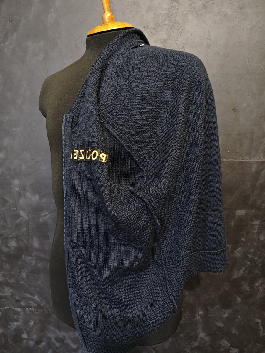 Такой кардиган является частью современного подхода к полицейской форме, делая её более практичной и удобной для повседневной службы, сохраняя при этом официальный и авторитетный вид.