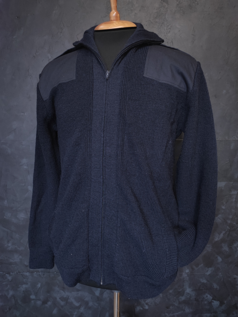 Немецкий служебный свитер на молнии от низа до верха без кармана на груди и с двумя нижними карманами.