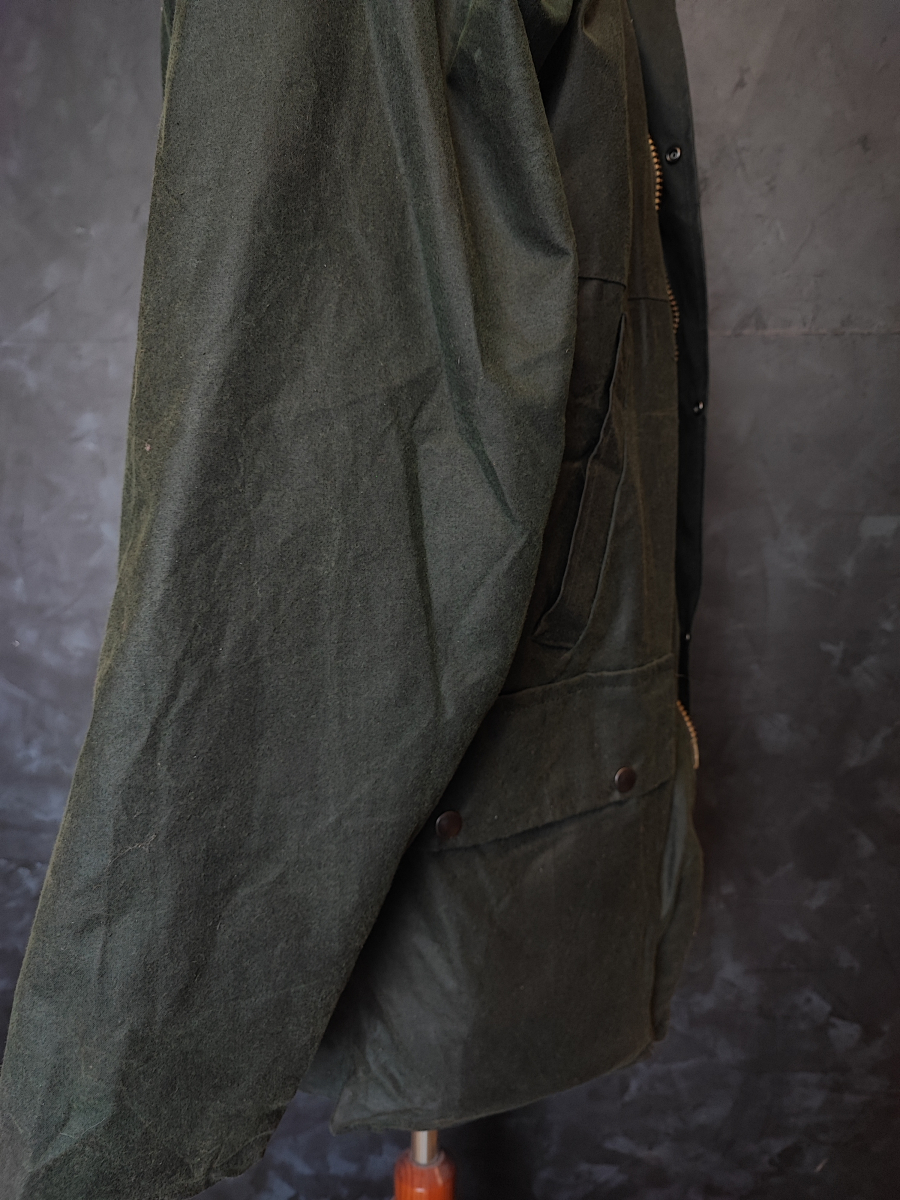 Мы предполагаем, что кто-то решил добавить ей влагостойких свойств и залил влагозащитным составом выше меры. Теперь она похожа на куртку, политую растительным маслом. Ткань и так была специально вощеная воском WAX-Cotton на производстве, а теперь его выжимать можно.