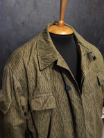 Это поздний вариант утепленной полевой куртки в штрихтарне. Утеплитель стеганый, не отстегивается. Рукава имеют трикотажные эластичные манжеты. 4 кармана снаружи. Два кармана на рукавах. Один внутренний справа в районе груди.