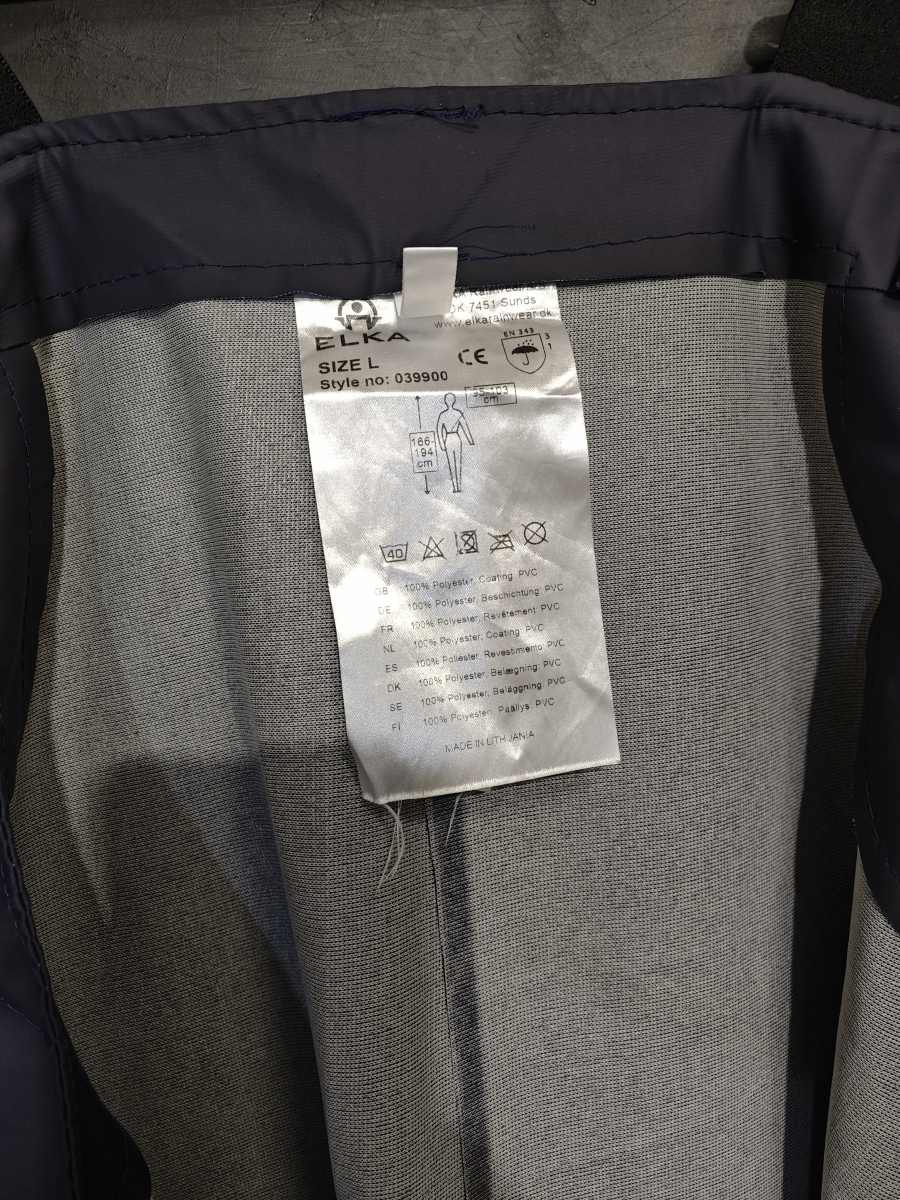 - L: ширина в поясе 56см, длина внутреннего шва 71-72см (для ношения с сапогами). На бирке: L, рост 166-194см, талия 95-103см.