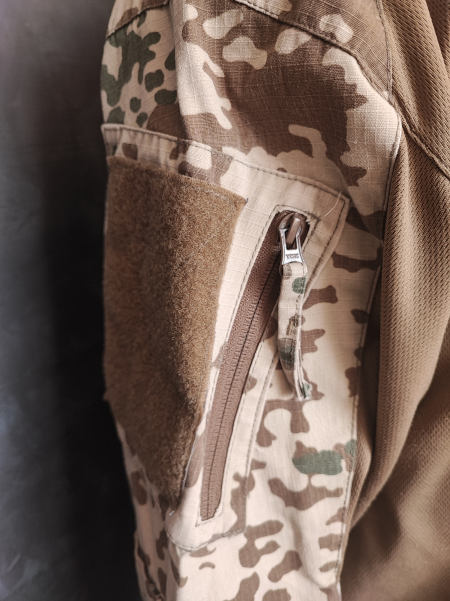 Боевая рубашка под бронежилет с корпусом из материала coolmax, камуфляж тропентарн. Рубашка в очень хорошем состоянии в целом, за исключением зоны coolmax в подмышках. Имеются многочисленные зацепки.